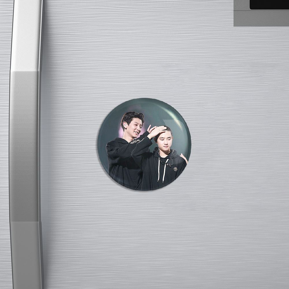مگنت گروه اکسو EXO خندالو با روکش سلفون مات مخملی ضدخش و قطعه پشتی فلزی تولید شده است که آهنربای اتمی بکار برده شده در محصول، بصورت مخفی تعبیه شده ودیده نمی شود. ضمن اینکه گیرایی بسیار بالایی داشته و به هیچ عنوان از روی یخچال نمی افتد.