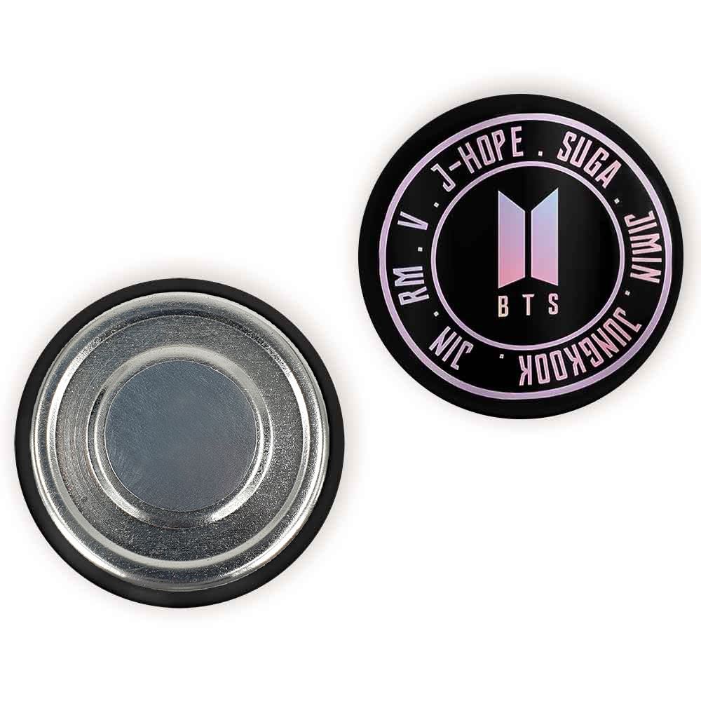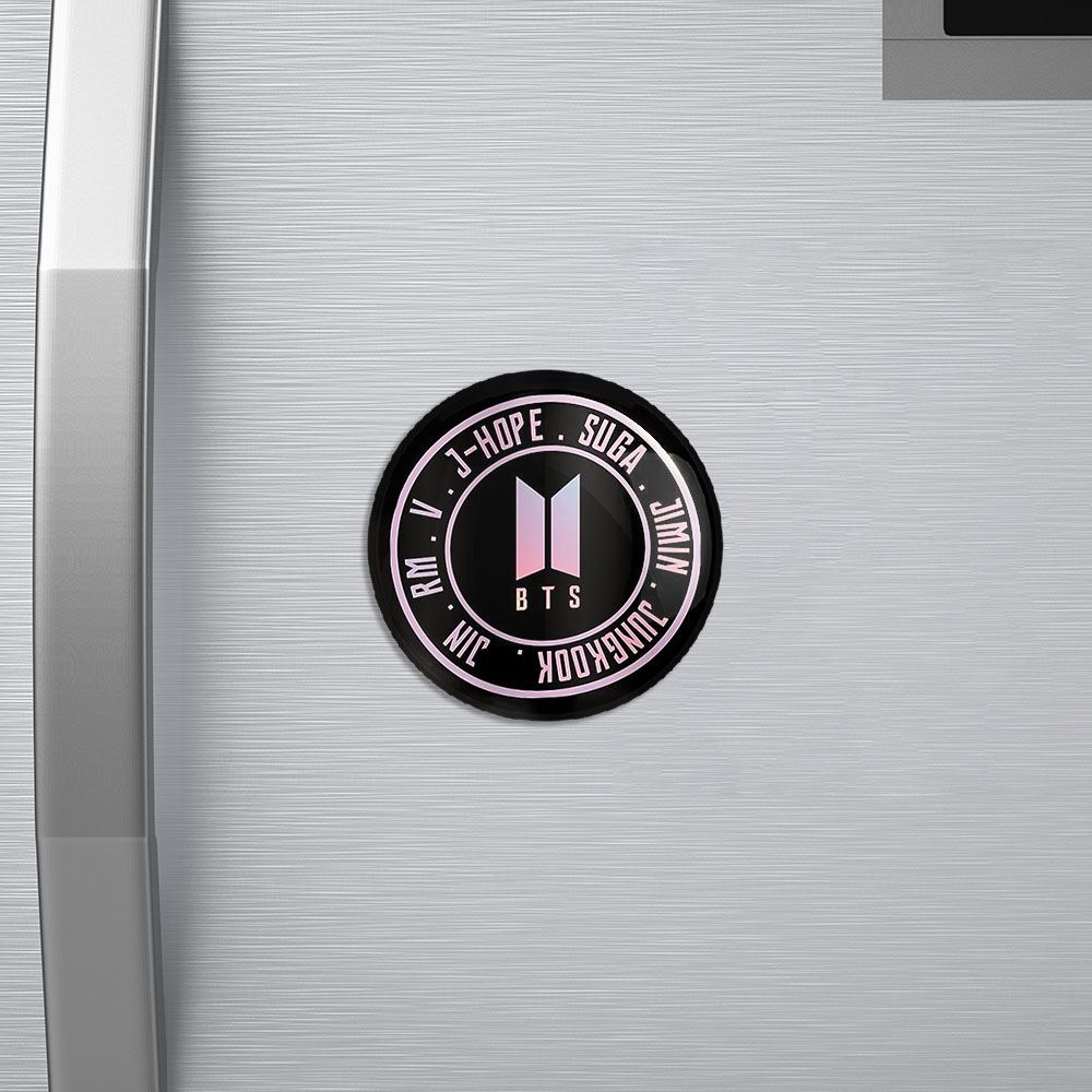 مگنت گروه بی تی اس BTS خندالو با روکش سلفون مات مخملی ضدخش و قطعه پشتی فلزی تولید شده است که آهنربای اتمی بکار برده شده در محصول، بصورت مخفی تعبیه شده ودیده نمی شود. ضمن اینکه گیرایی بسیار بالایی داشته و به هیچ عنوان از روی یخچال نمی افتد.