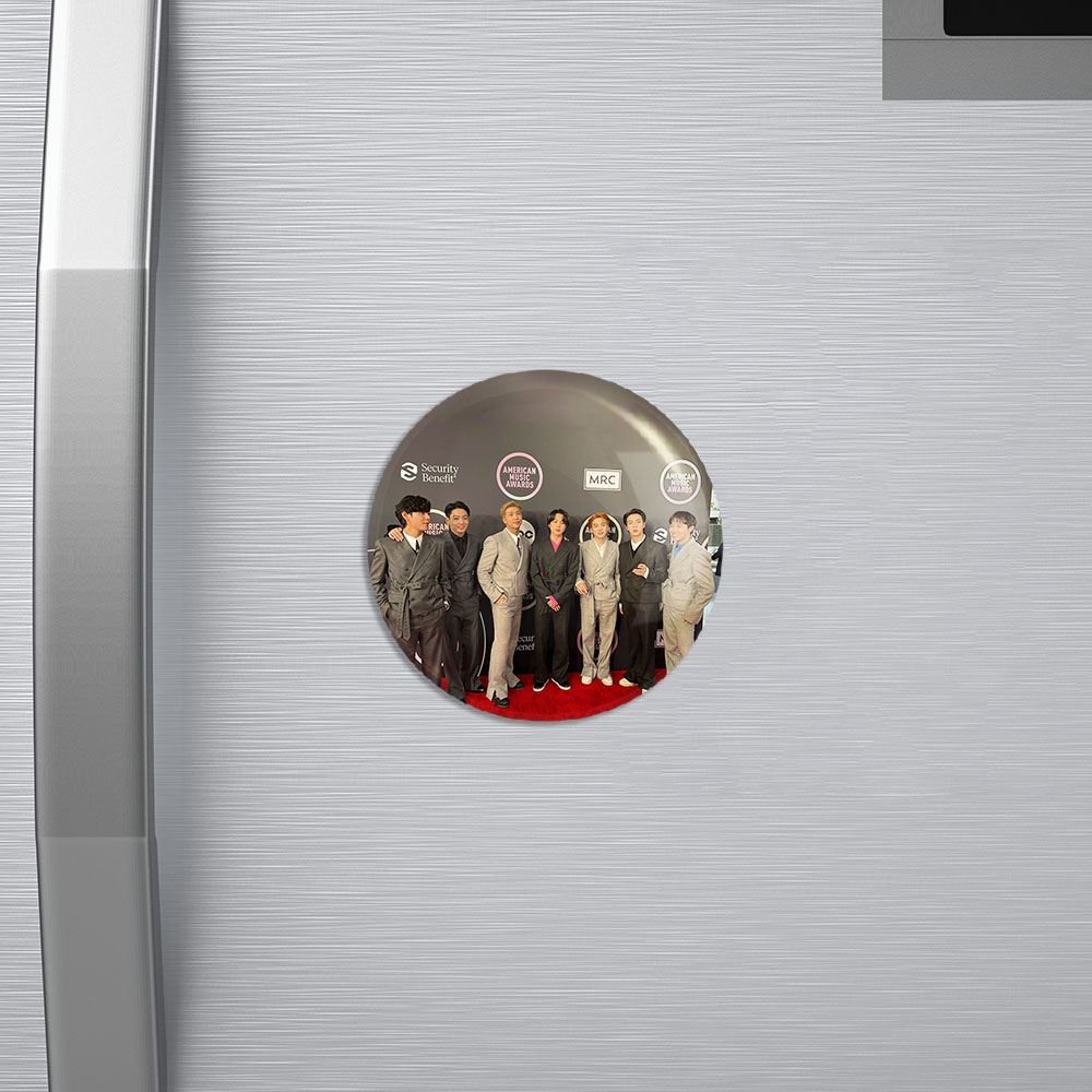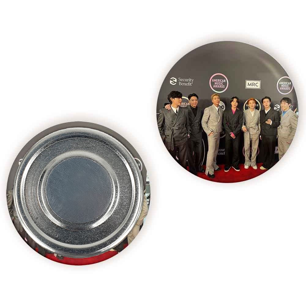 مگنت گروه بی تی اس BTS خندالو با روکش سلفون مات مخملی ضدخش و قطعه پشتی فلزی تولید شده است که آهنربای اتمی بکار برده شده در محصول، بصورت مخفی تعبیه شده ودیده نمی شود. ضمن اینکه گیرایی بسیار بالایی داشته و به هیچ عنوان از روی یخچال نمی افتد.