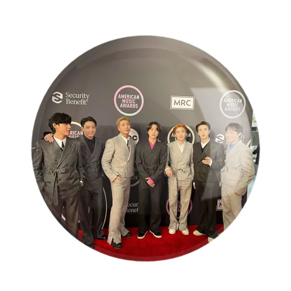 مگنت گروه بی تی اس BTS خندالو با روکش سلفون مات مخملی ضدخش و قطعه پشتی فلزی تولید شده است که آهنربای اتمی بکار برده شده در محصول، بصورت مخفی تعبیه شده ودیده نمی شود. ضمن اینکه گیرایی بسیار بالایی داشته و به هیچ عنوان از روی یخچال نمی افتد.