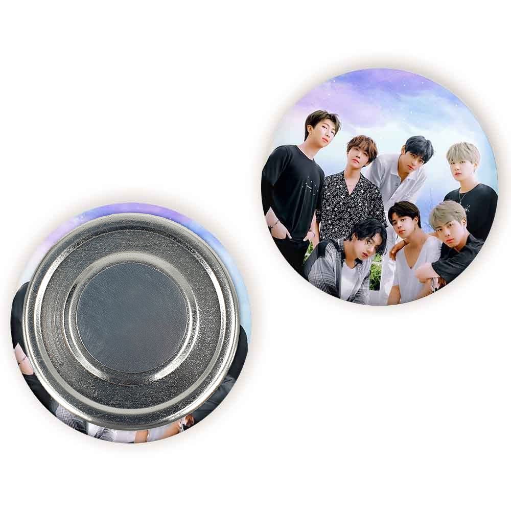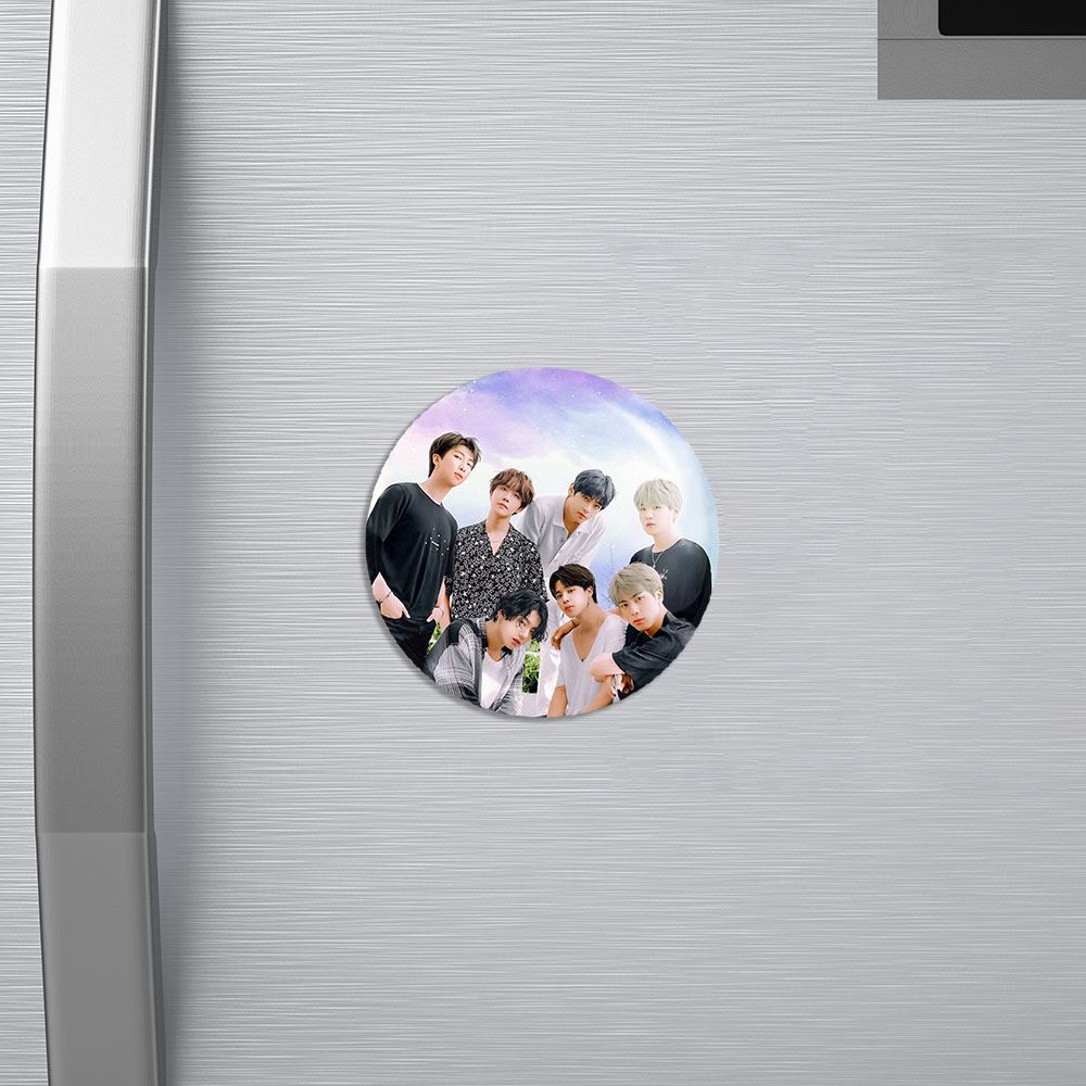 مگنت گروه بی تی اس BTS خندالو با روکش سلفون مات مخملی ضدخش و قطعه پشتی فلزی تولید شده است که آهنربای اتمی بکار برده شده در محصول، بصورت مخفی تعبیه شده ودیده نمی شود. ضمن اینکه گیرایی بسیار بالایی داشته و به هیچ عنوان از روی یخچال نمی افتد.