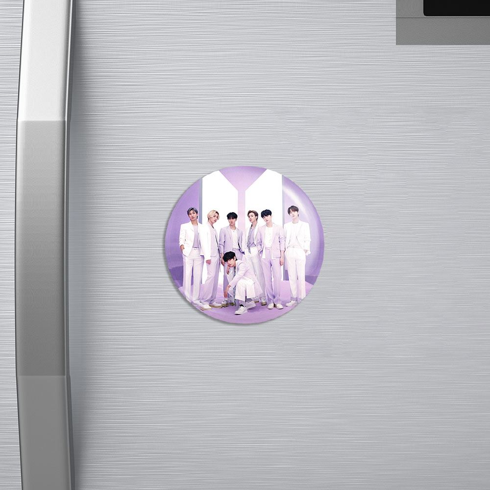 مگنت گروه بی تی اس BTS خندالو با روکش سلفون مات مخملی ضدخش و قطعه پشتی فلزی تولید شده است که آهنربای اتمی بکار برده شده در محصول، بصورت مخفی تعبیه شده ودیده نمی شود. ضمن اینکه گیرایی بسیار بالایی داشته و به هیچ عنوان از روی یخچال نمی افتد.