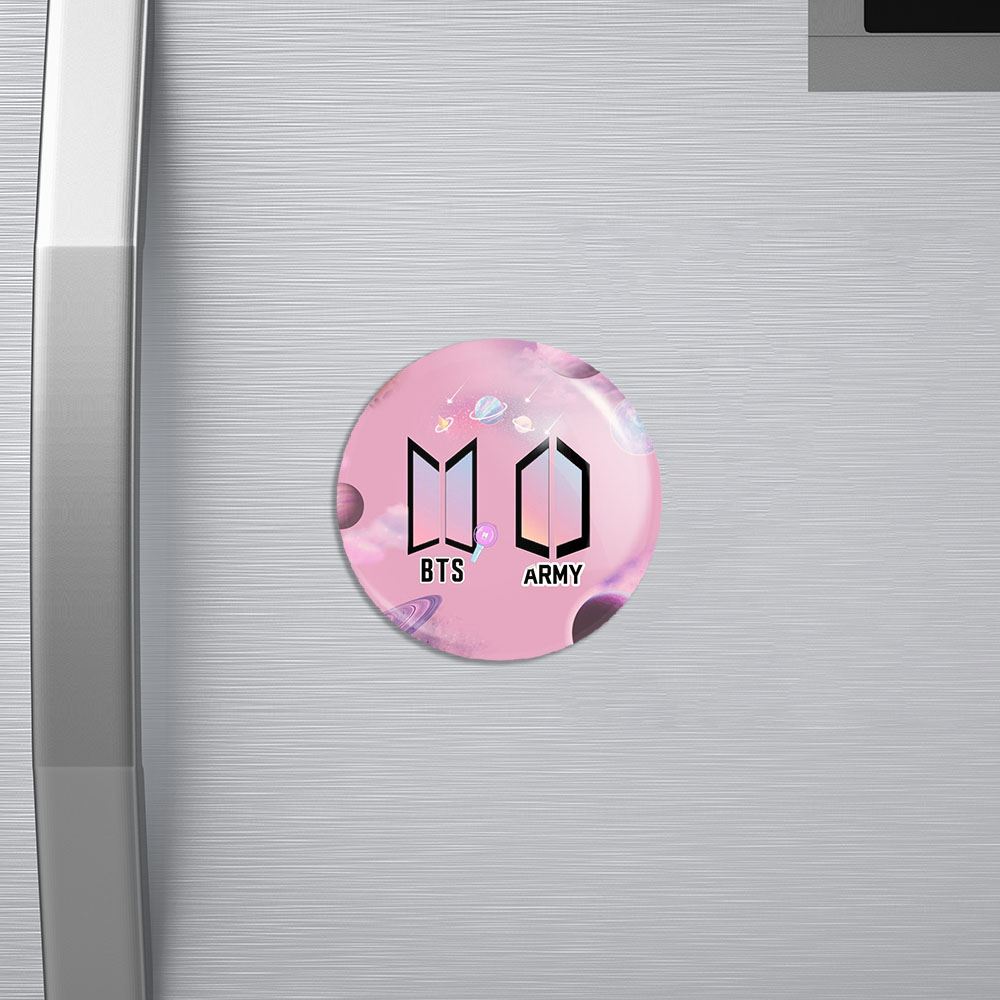 مگنت گروه بی تی اس BTS خندالو با روکش سلفون مات مخملی ضدخش و قطعه پشتی فلزی تولید شده است که آهنربای اتمی بکار برده شده در محصول، بصورت مخفی تعبیه شده ودیده نمی شود. ضمن اینکه گیرایی بسیار بالایی داشته و به هیچ عنوان از روی یخچال نمی افتد.