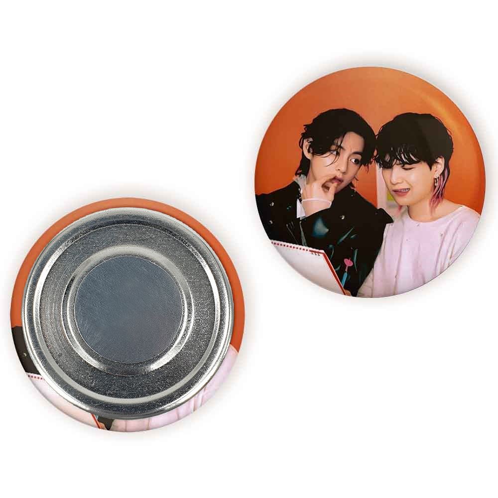 مگنت گروه بی تی اس BTS خندالو با روکش سلفون مات مخملی ضدخش و قطعه پشتی فلزی تولید شده است که آهنربای اتمی بکار برده شده در محصول، بصورت مخفی تعبیه شده ودیده نمی شود. ضمن اینکه گیرایی بسیار بالایی داشته و به هیچ عنوان از روی یخچال نمی افتد.