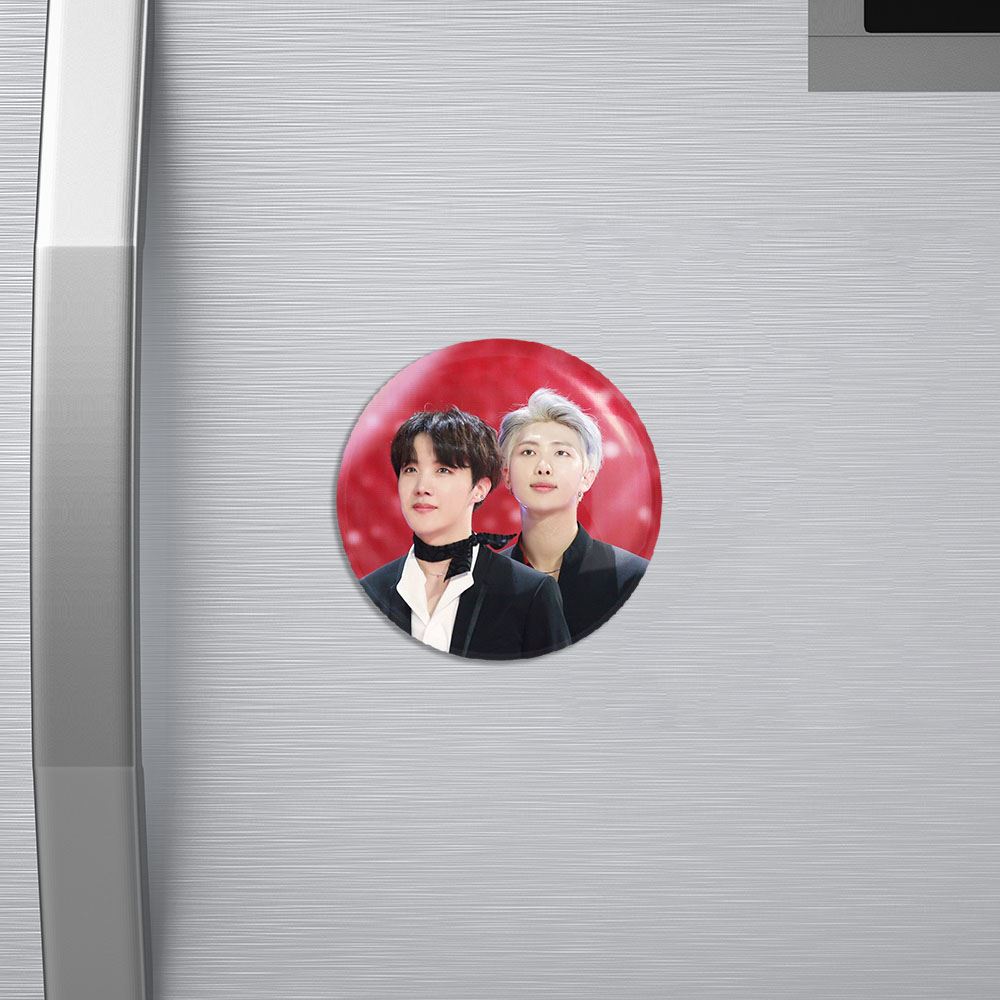 مگنت گروه بی تی اس BTS خندالو با روکش سلفون مات مخملی ضدخش و قطعه پشتی فلزی تولید شده است که آهنربای اتمی بکار برده شده در محصول، بصورت مخفی تعبیه شده ودیده نمی شود. ضمن اینکه گیرایی بسیار بالایی داشته و به هیچ عنوان از روی یخچال نمی افتد.