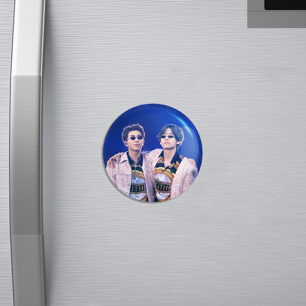 مگنت گروه بی تی اس BTS خندالو با روکش سلفون مات مخملی ضدخش و قطعه پشتی فلزی تولید شده است که آهنربای اتمی بکار برده شده در محصول، بصورت مخفی تعبیه شده ودیده نمی شود. ضمن اینکه گیرایی بسیار بالایی داشته و به هیچ عنوان از روی یخچال نمی افتد.