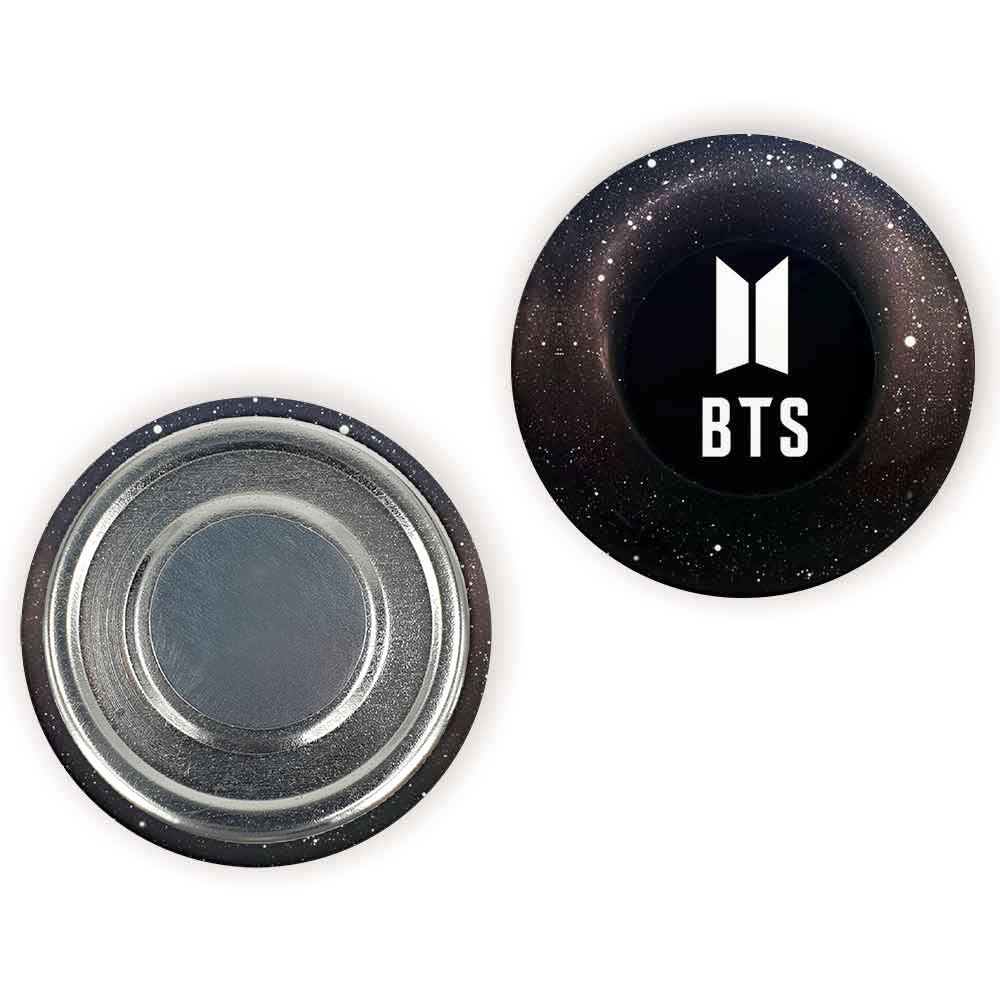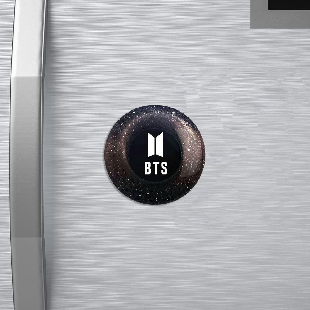 مگنت گروه بی تی اس BTS خندالو با روکش سلفون مات مخملی ضدخش و قطعه پشتی فلزی تولید شده است که آهنربای اتمی بکار برده شده در محصول، بصورت مخفی تعبیه شده ودیده نمی شود. ضمن اینکه گیرایی بسیار بالایی داشته و به هیچ عنوان از روی یخچال نمی افتد.