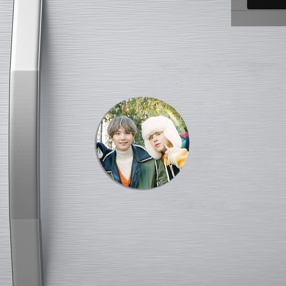 مگنت گروه بی تی اس BTS خندالو با روکش سلفون مات مخملی ضدخش و قطعه پشتی فلزی تولید شده است که آهنربای اتمی بکار برده شده در محصول، بصورت مخفی تعبیه شده ودیده نمی شود. ضمن اینکه گیرایی بسیار بالایی داشته و به هیچ عنوان از روی یخچال نمی افتد.