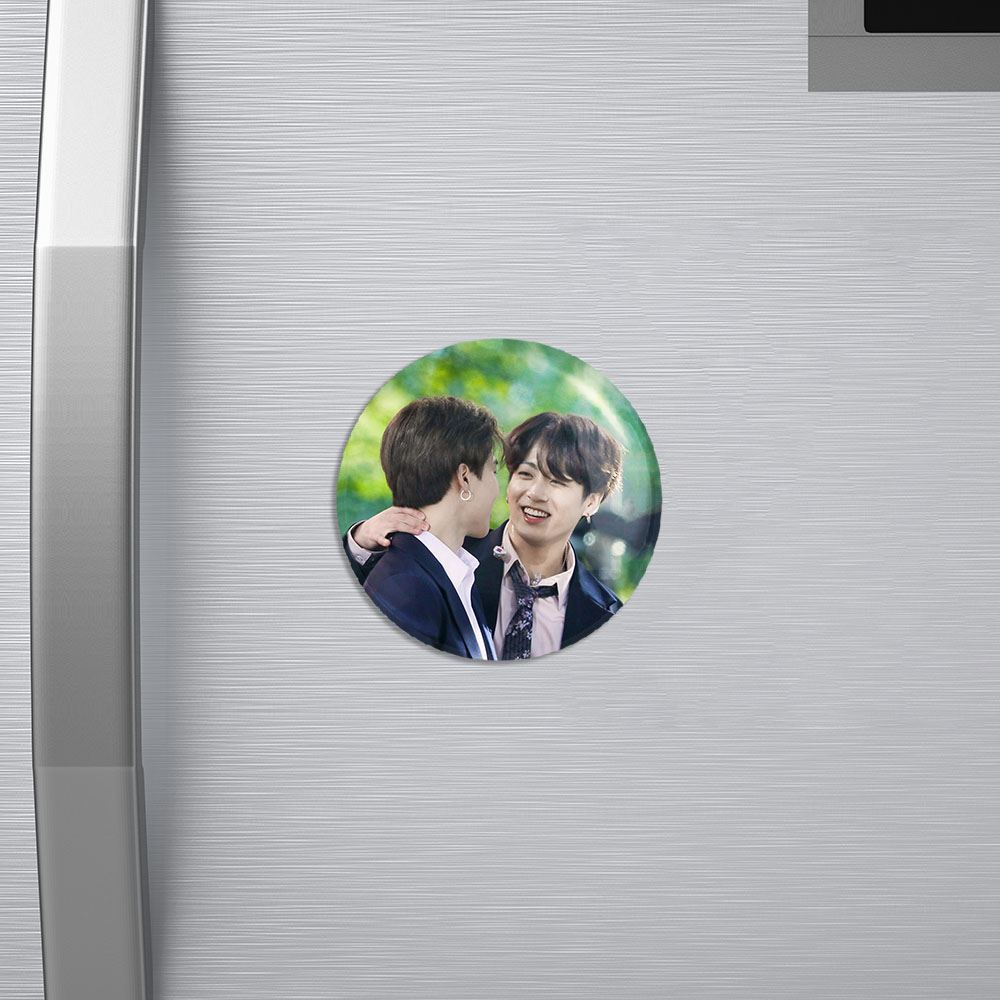 مگنت گروه بی تی اس BTS خندالو با روکش سلفون مات مخملی ضدخش و قطعه پشتی فلزی تولید شده است که آهنربای اتمی بکار برده شده در محصول، بصورت مخفی تعبیه شده ودیده نمی شود. ضمن اینکه گیرایی بسیار بالایی داشته و به هیچ عنوان از روی یخچال نمی افتد.