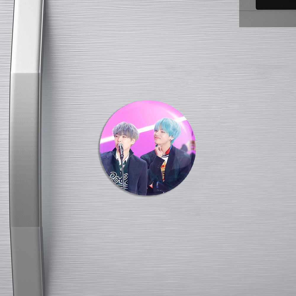 مگنت گروه بی تی اس BTS خندالو با روکش سلفون مات مخملی ضدخش و قطعه پشتی فلزی تولید شده است که آهنربای اتمی بکار برده شده در محصول، بصورت مخفی تعبیه شده ودیده نمی شود. ضمن اینکه گیرایی بسیار بالایی داشته و به هیچ عنوان از روی یخچال نمی افتد.