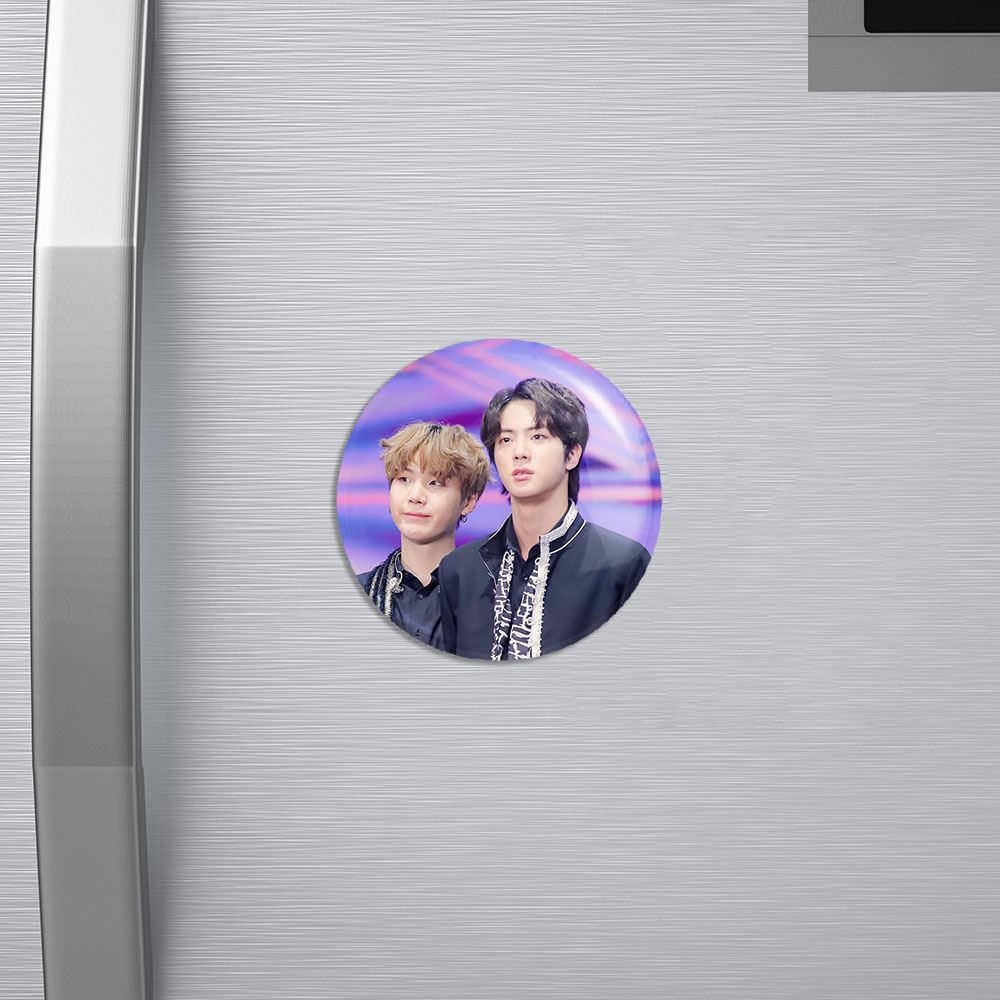 مگنت گروه بی تی اس BTS خندالو با روکش سلفون مات مخملی ضدخش و قطعه پشتی فلزی تولید شده است که آهنربای اتمی بکار برده شده در محصول، بصورت مخفی تعبیه شده ودیده نمی شود. ضمن اینکه گیرایی بسیار بالایی داشته و به هیچ عنوان از روی یخچال نمی افتد.