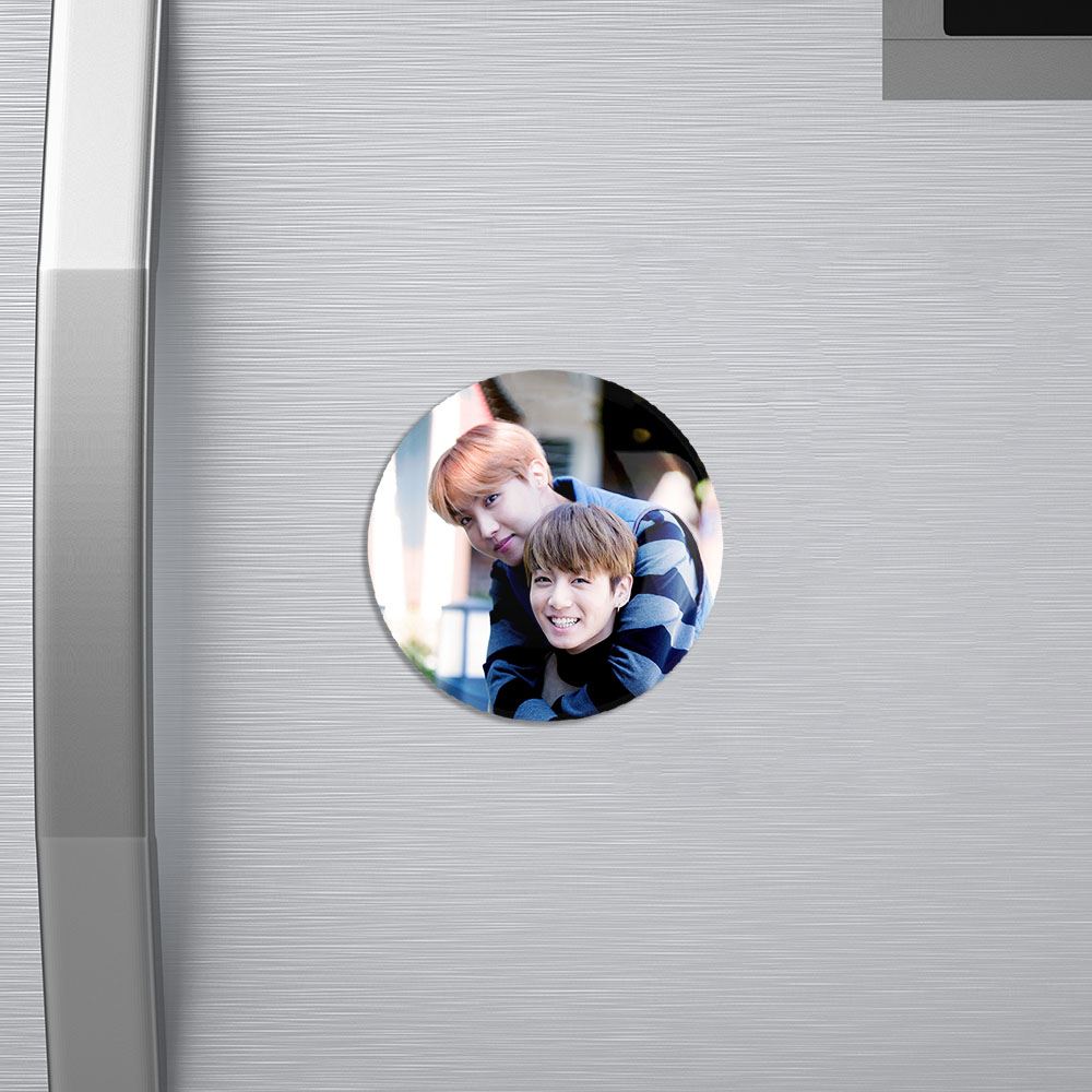 مگنت گروه بی تی اس BTS خندالو با روکش سلفون مات مخملی ضدخش و قطعه پشتی فلزی تولید شده است که آهنربای اتمی بکار برده شده در محصول، بصورت مخفی تعبیه شده ودیده نمی شود. ضمن اینکه گیرایی بسیار بالایی داشته و به هیچ عنوان از روی یخچال نمی افتد.