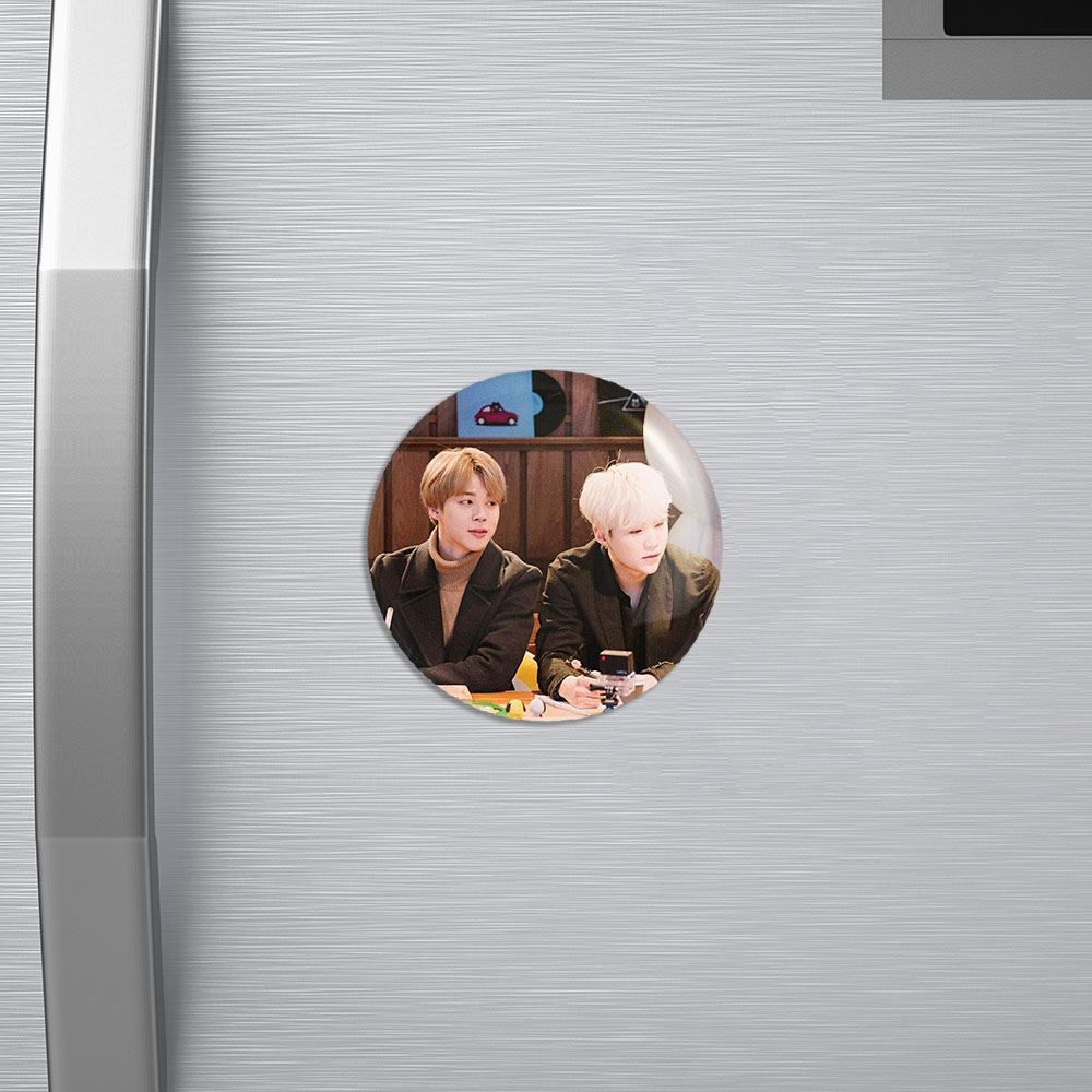 مگنت گروه بی تی اس BTS خندالو با روکش سلفون مات مخملی ضدخش و قطعه پشتی فلزی تولید شده است که آهنربای اتمی بکار برده شده در محصول، بصورت مخفی تعبیه شده ودیده نمی شود. ضمن اینکه گیرایی بسیار بالایی داشته و به هیچ عنوان از روی یخچال نمی افتد.