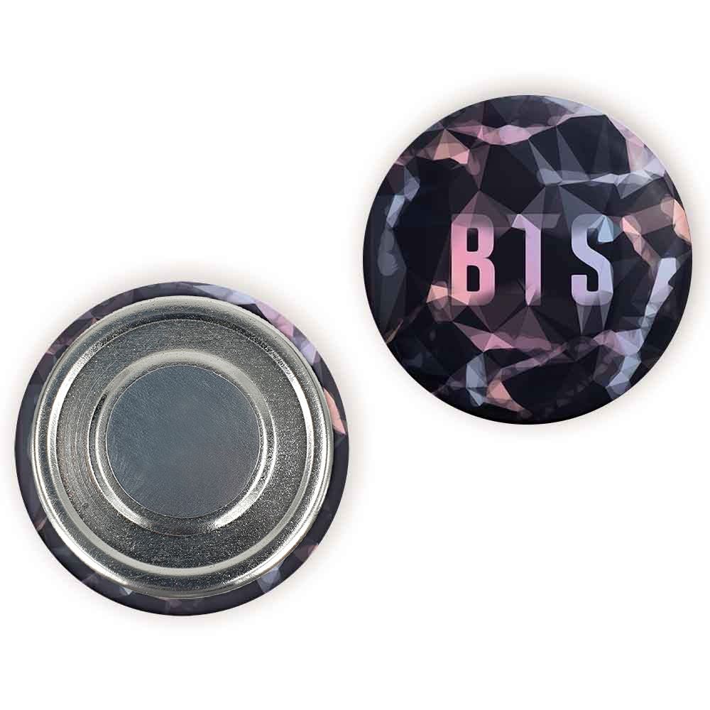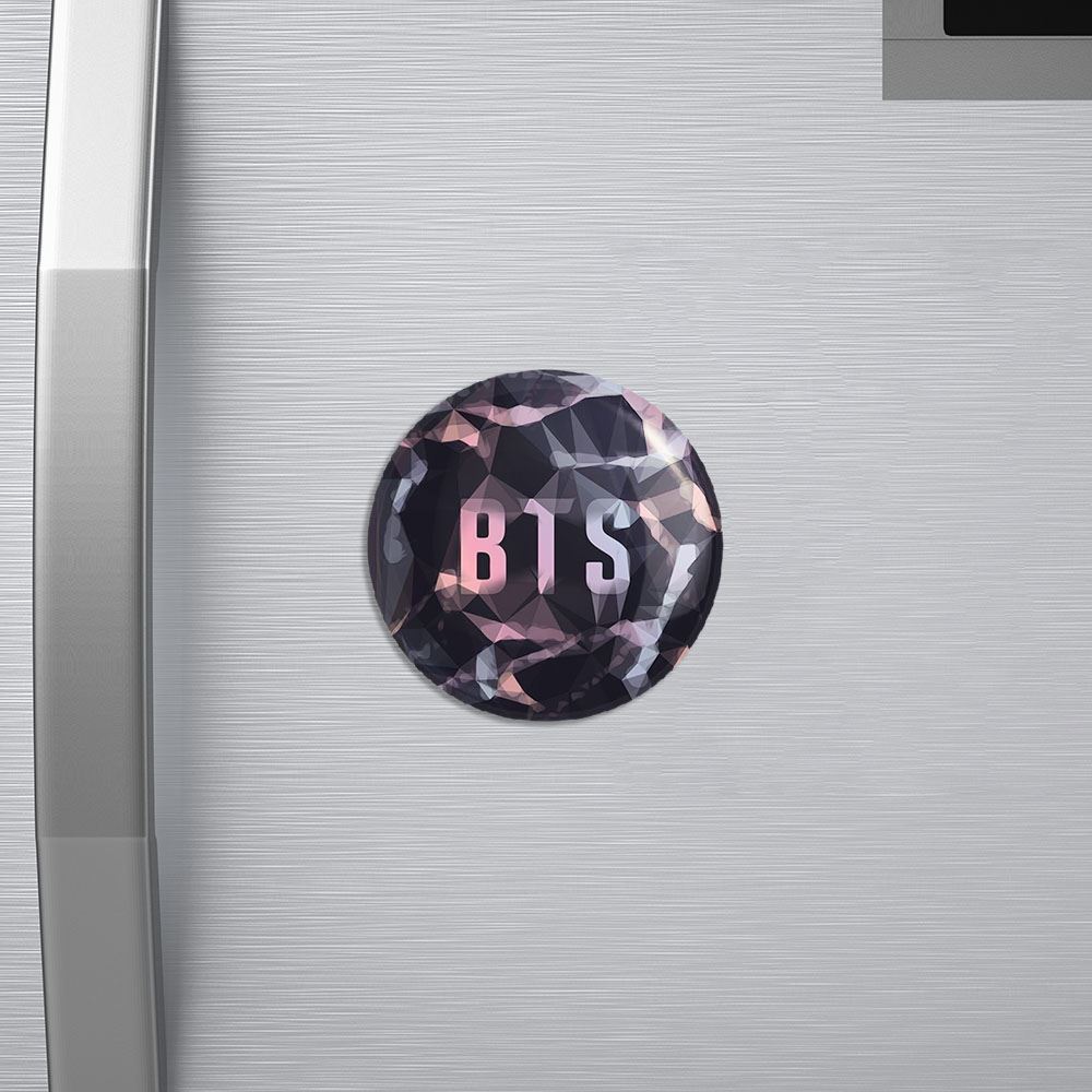 مگنت گروه بی تی اس BTS خندالو با روکش سلفون مات مخملی ضدخش و قطعه پشتی فلزی تولید شده است که آهنربای اتمی بکار برده شده در محصول، بصورت مخفی تعبیه شده ودیده نمی شود. ضمن اینکه گیرایی بسیار بالایی داشته و به هیچ عنوان از روی یخچال نمی افتد.
