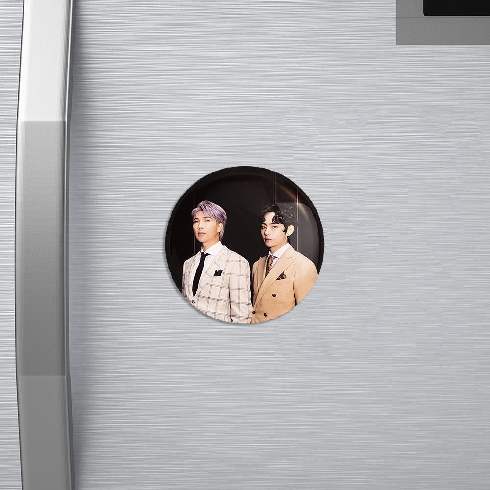 مگنت گروه بی تی اس BTS خندالو با روکش سلفون مات مخملی ضدخش و قطعه پشتی فلزی تولید شده است که آهنربای اتمی بکار برده شده در محصول، بصورت مخفی تعبیه شده ودیده نمی شود. ضمن اینکه گیرایی بسیار بالایی داشته و به هیچ عنوان از روی یخچال نمی افتد.