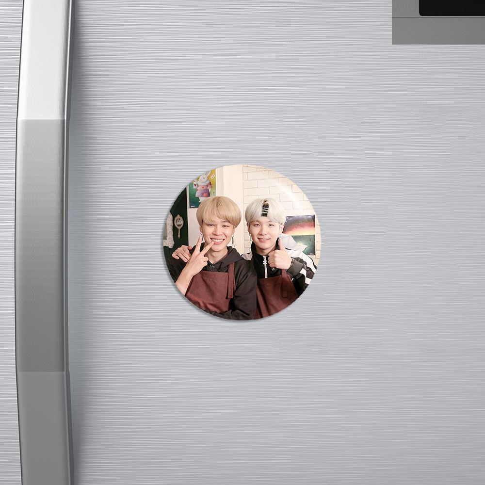 مگنت گروه بی تی اس BTS خندالو با روکش سلفون مات مخملی ضدخش و قطعه پشتی فلزی تولید شده است که آهنربای اتمی بکار برده شده در محصول، بصورت مخفی تعبیه شده ودیده نمی شود. ضمن اینکه گیرایی بسیار بالایی داشته و به هیچ عنوان از روی یخچال نمی افتد.