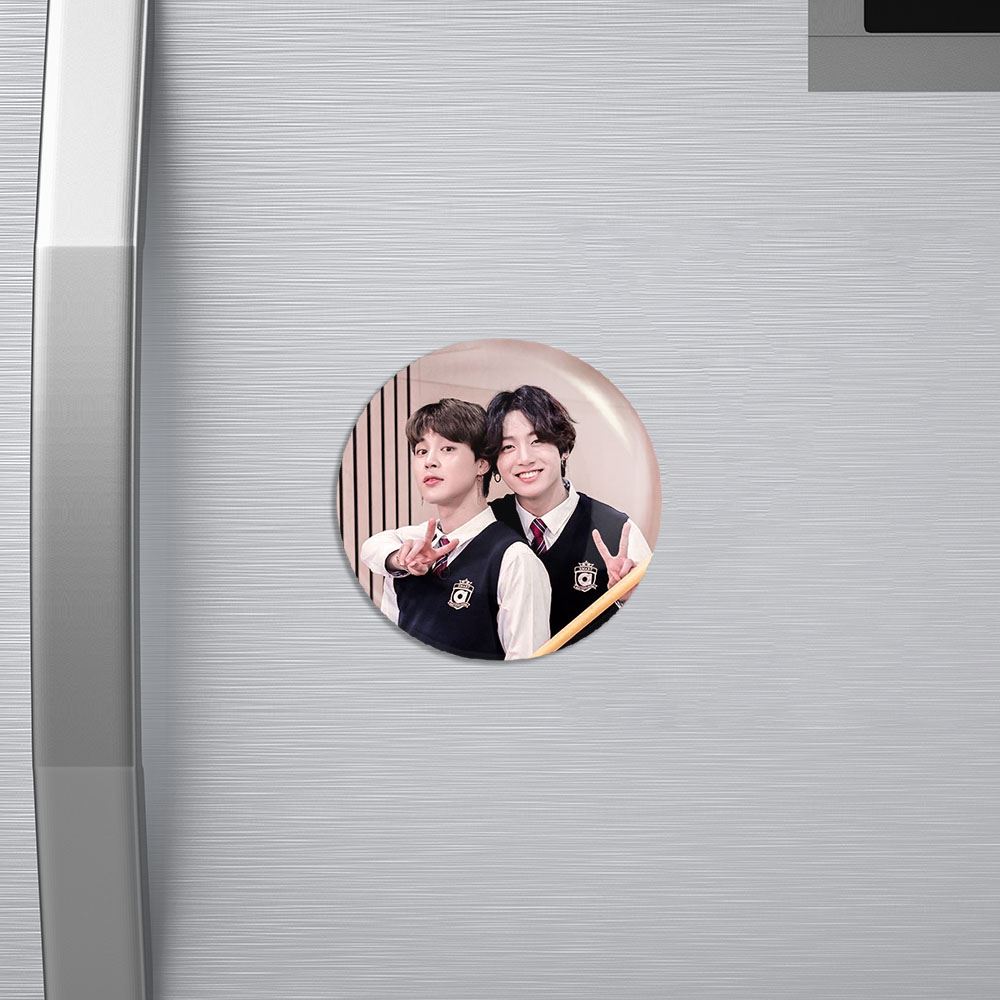 مگنت گروه بی تی اس BTS خندالو با روکش سلفون مات مخملی ضدخش و قطعه پشتی فلزی تولید شده است که آهنربای اتمی بکار برده شده در محصول، بصورت مخفی تعبیه شده ودیده نمی شود. ضمن اینکه گیرایی بسیار بالایی داشته و به هیچ عنوان از روی یخچال نمی افتد.