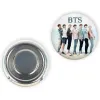 مگنت گروه بی تی اس BTS خندالو با روکش سلفون مات مخملی ضدخش و قطعه پشتی فلزی تولید شده است که آهنربای اتمی بکار برده شده در محصول، بصورت مخفی تعبیه شده ودیده نمی شود. ضمن اینکه گیرایی بسیار بالایی داشته و به هیچ عنوان از روی یخچال نمی افتد.