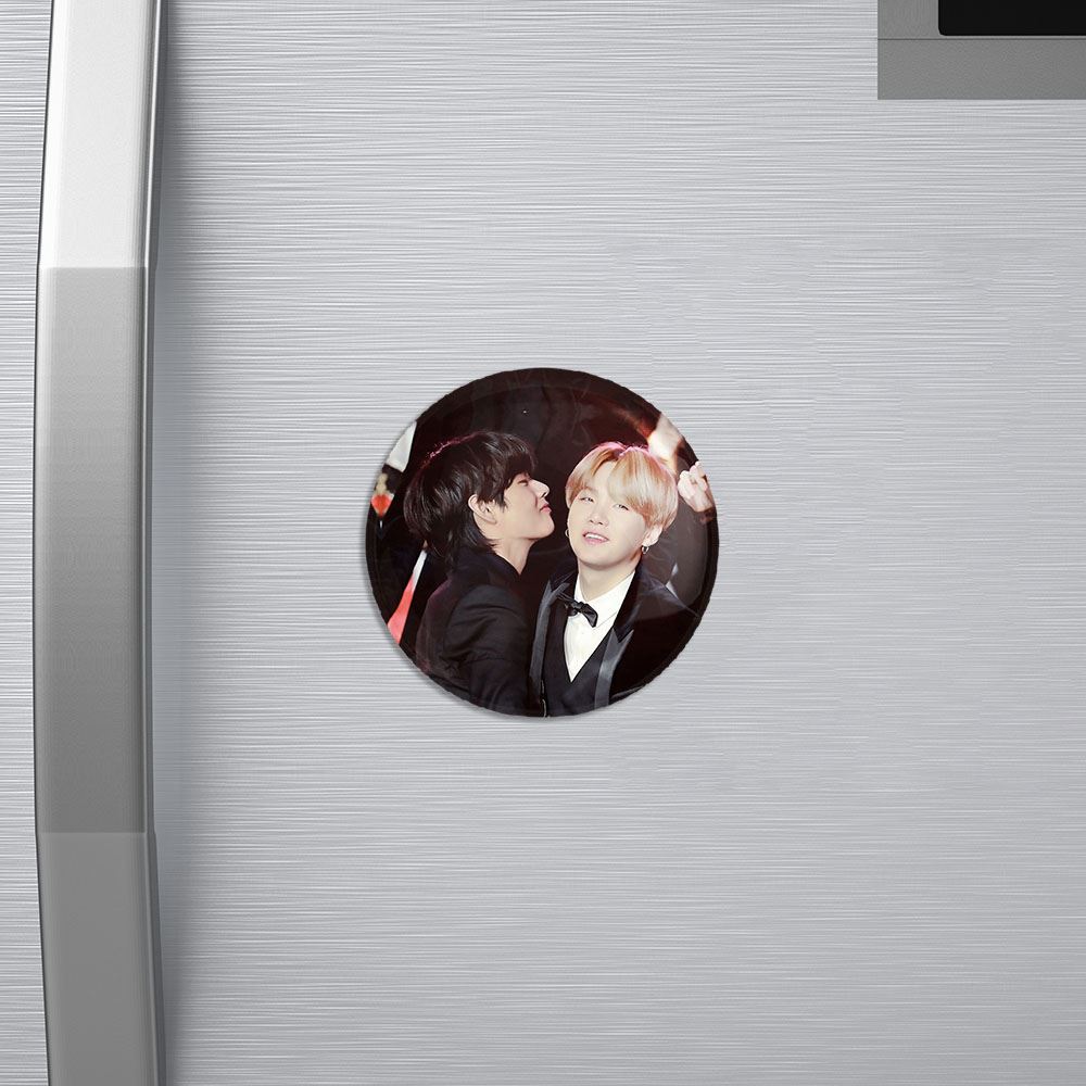 مگنت گروه بی تی اس BTS خندالو با روکش سلفون مات مخملی ضدخش و قطعه پشتی فلزی تولید شده است که آهنربای اتمی بکار برده شده در محصول، بصورت مخفی تعبیه شده ودیده نمی شود. ضمن اینکه گیرایی بسیار بالایی داشته و به هیچ عنوان از روی یخچال نمی افتد.