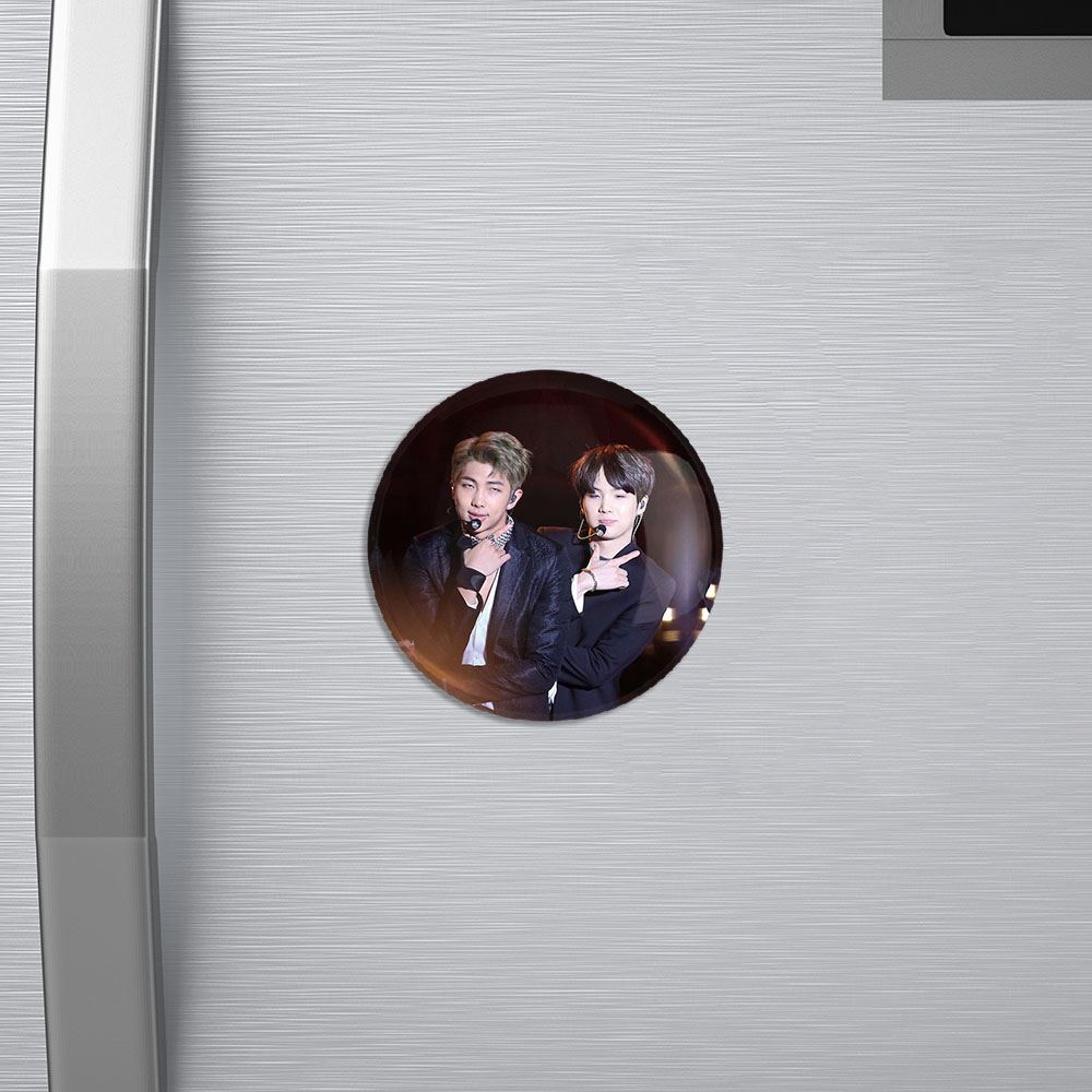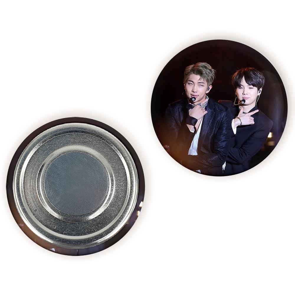 مگنت گروه بی تی اس BTS خندالو با روکش سلفون مات مخملی ضدخش و قطعه پشتی فلزی تولید شده است که آهنربای اتمی بکار برده شده در محصول، بصورت مخفی تعبیه شده ودیده نمی شود. ضمن اینکه گیرایی بسیار بالایی داشته و به هیچ عنوان از روی یخچال نمی افتد.
