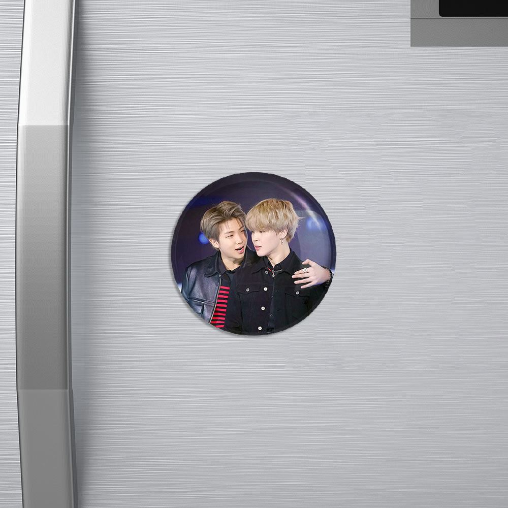 مگنت گروه بی تی اس BTS خندالو با روکش سلفون مات مخملی ضدخش و قطعه پشتی فلزی تولید شده است که آهنربای اتمی بکار برده شده در محصول، بصورت مخفی تعبیه شده ودیده نمی شود. ضمن اینکه گیرایی بسیار بالایی داشته و به هیچ عنوان از روی یخچال نمی افتد.