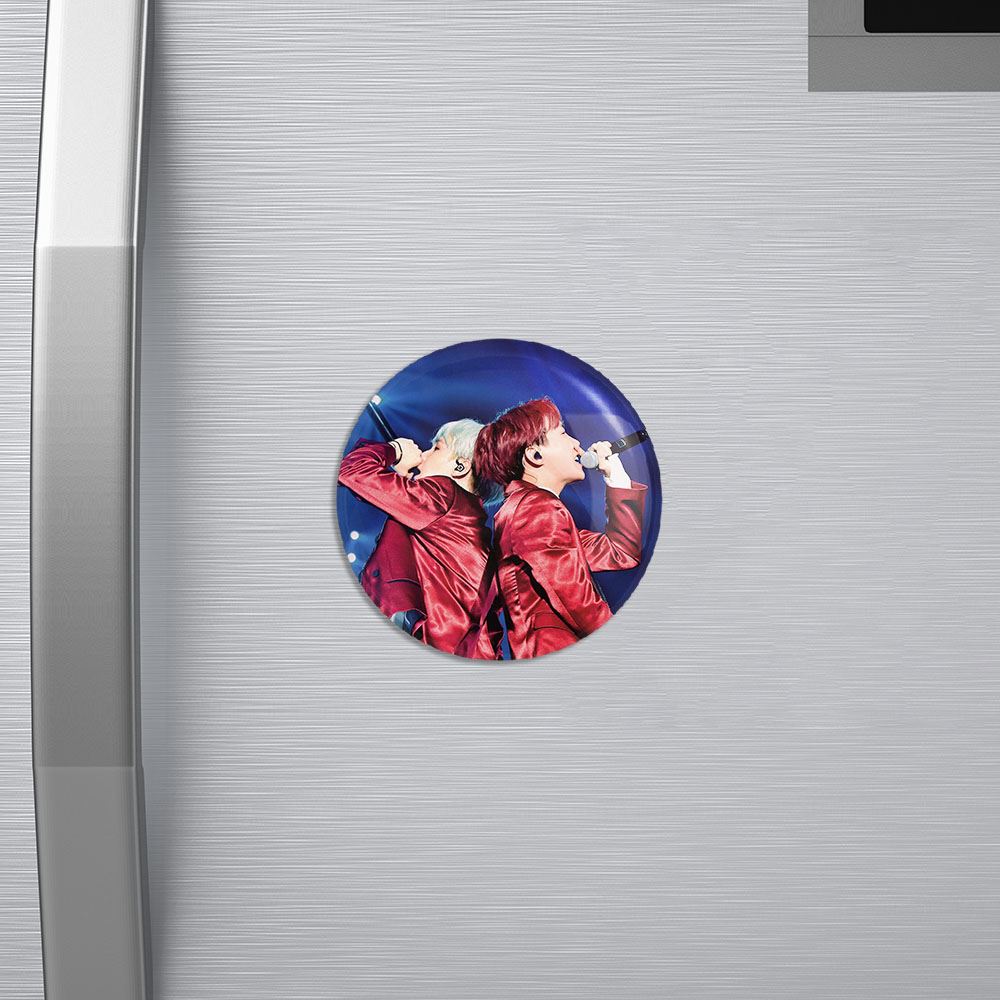 مگنت گروه بی تی اس BTS خندالو با روکش سلفون مات مخملی ضدخش و قطعه پشتی فلزی تولید شده است که آهنربای اتمی بکار برده شده در محصول، بصورت مخفی تعبیه شده ودیده نمی شود. ضمن اینکه گیرایی بسیار بالایی داشته و به هیچ عنوان از روی یخچال نمی افتد.
