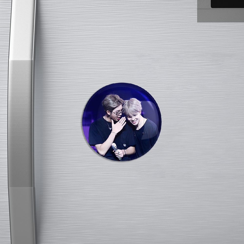 مگنت گروه بی تی اس BTS خندالو با روکش سلفون مات مخملی ضدخش و قطعه پشتی فلزی تولید شده است که آهنربای اتمی بکار برده شده در محصول، بصورت مخفی تعبیه شده ودیده نمی شود. ضمن اینکه گیرایی بسیار بالایی داشته و به هیچ عنوان از روی یخچال نمی افتد.