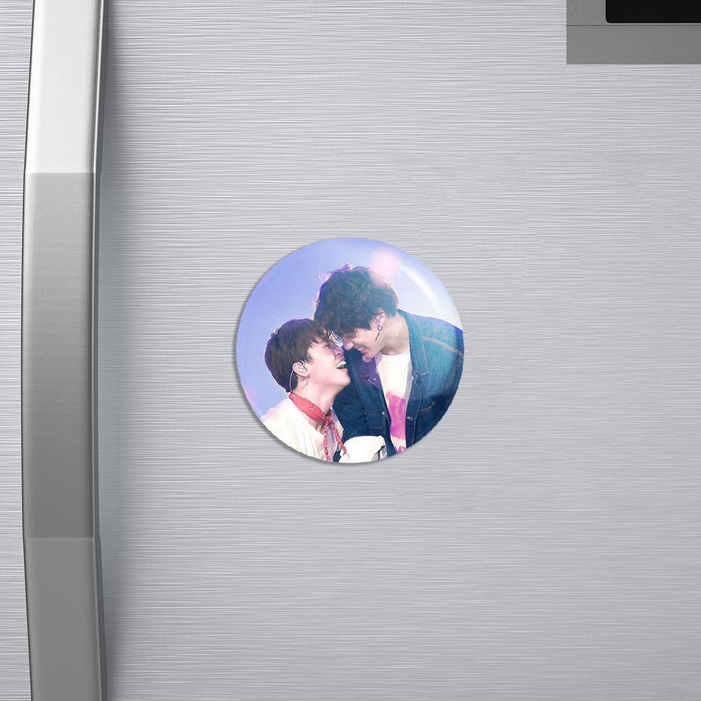مگنت گروه بی تی اس BTS خندالو با روکش سلفون مات مخملی ضدخش و قطعه پشتی فلزی تولید شده است که آهنربای اتمی بکار برده شده در محصول، بصورت مخفی تعبیه شده ودیده نمی شود. ضمن اینکه گیرایی بسیار بالایی داشته و به هیچ عنوان از روی یخچال نمی افتد.