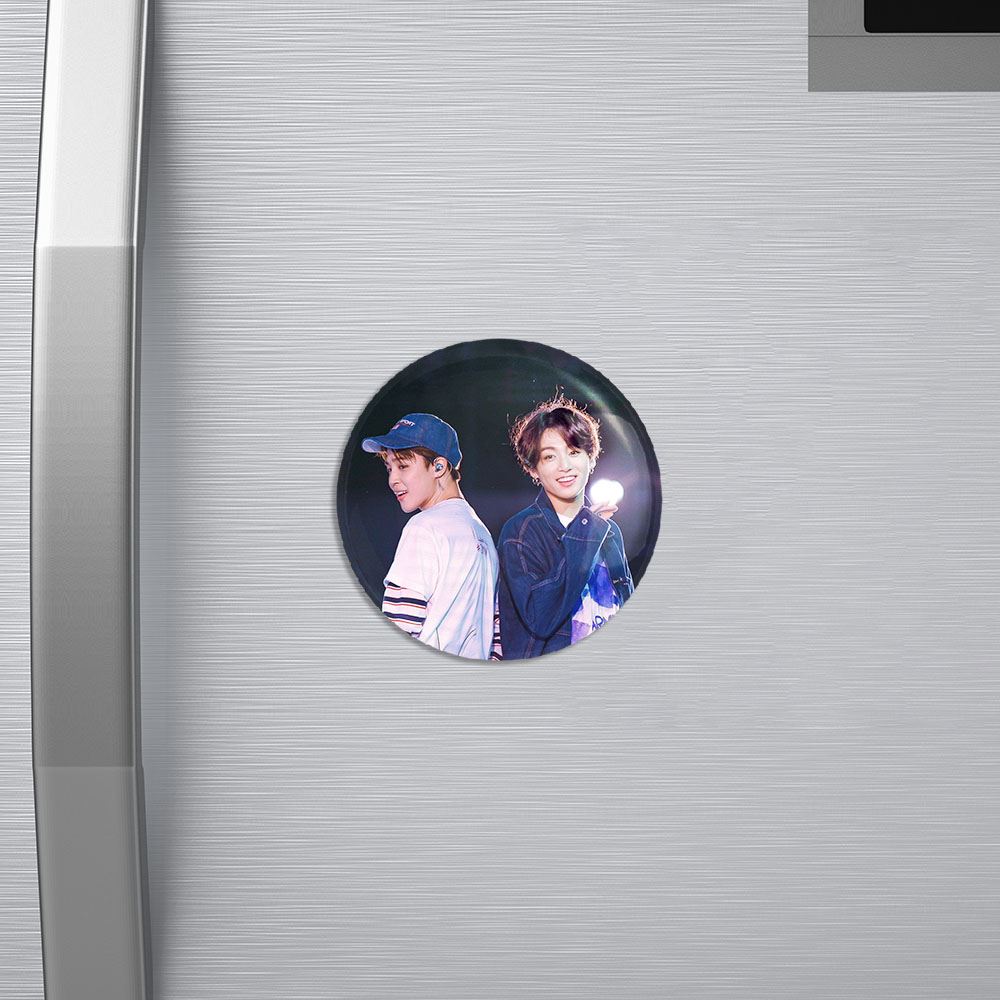مگنت گروه بی تی اس BTS خندالو با روکش سلفون مات مخملی ضدخش و قطعه پشتی فلزی تولید شده است که آهنربای اتمی بکار برده شده در محصول، بصورت مخفی تعبیه شده ودیده نمی شود. ضمن اینکه گیرایی بسیار بالایی داشته و به هیچ عنوان از روی یخچال نمی افتد.