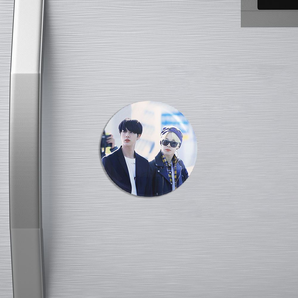 مگنت گروه بی تی اس BTS خندالو با روکش سلفون مات مخملی ضدخش و قطعه پشتی فلزی تولید شده است که آهنربای اتمی بکار برده شده در محصول، بصورت مخفی تعبیه شده ودیده نمی شود. ضمن اینکه گیرایی بسیار بالایی داشته و به هیچ عنوان از روی یخچال نمی افتد.