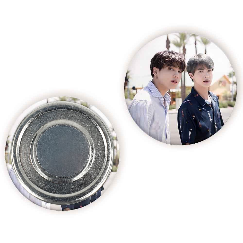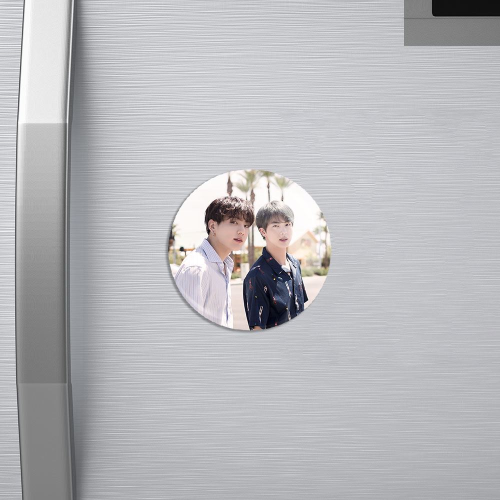مگنت گروه بی تی اس BTS خندالو با روکش سلفون مات مخملی ضدخش و قطعه پشتی فلزی تولید شده است که آهنربای اتمی بکار برده شده در محصول، بصورت مخفی تعبیه شده ودیده نمی شود. ضمن اینکه گیرایی بسیار بالایی داشته و به هیچ عنوان از روی یخچال نمی افتد.