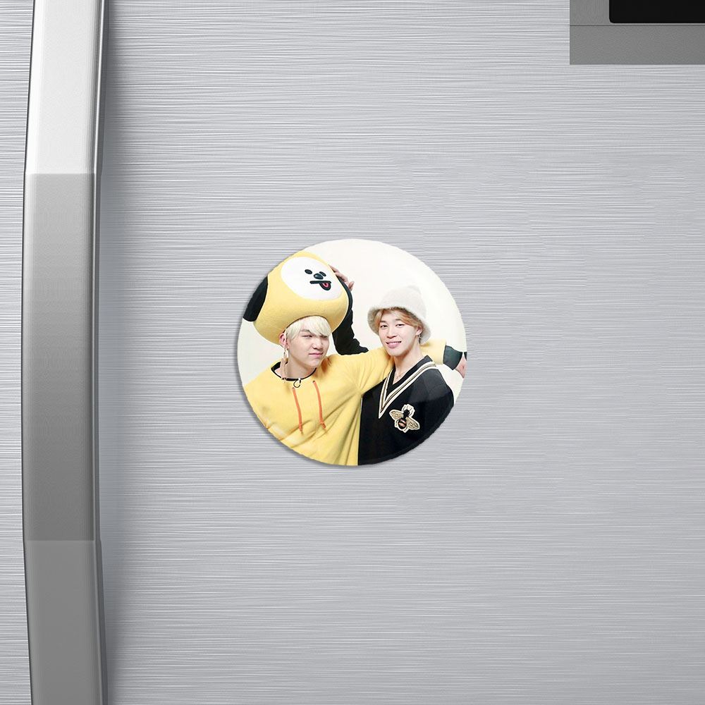 مگنت گروه بی تی اس BTS خندالو با روکش سلفون مات مخملی ضدخش و قطعه پشتی فلزی تولید شده است که آهنربای اتمی بکار برده شده در محصول، بصورت مخفی تعبیه شده ودیده نمی شود. ضمن اینکه گیرایی بسیار بالایی داشته و به هیچ عنوان از روی یخچال نمی افتد.