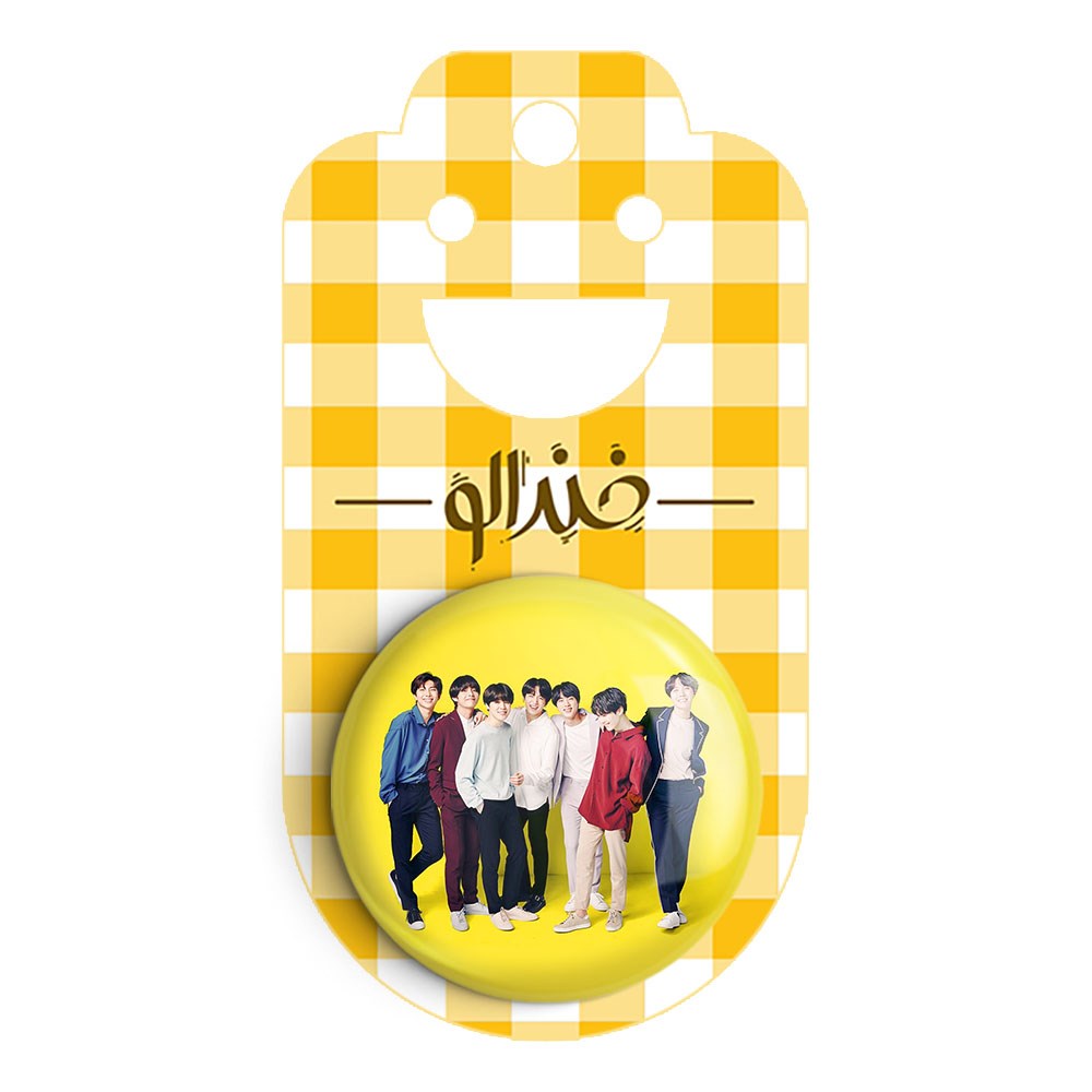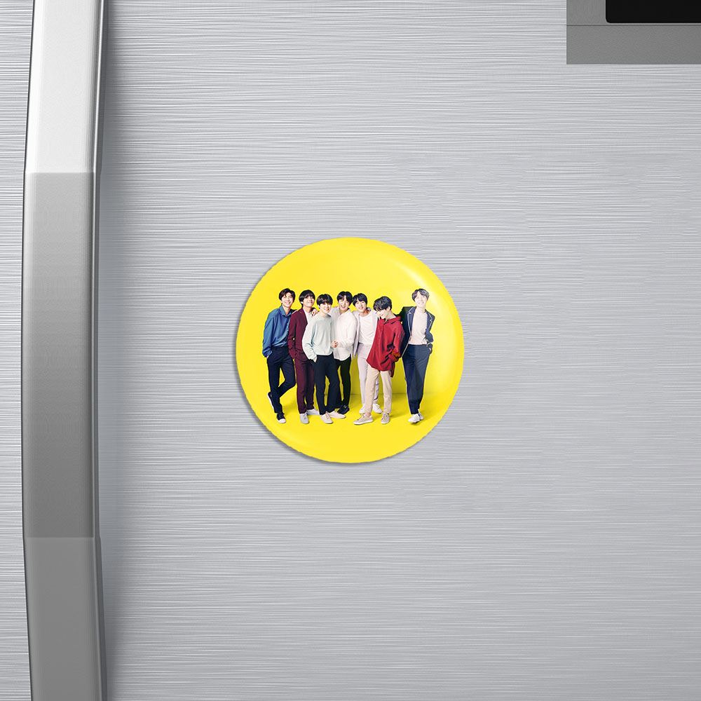 مگنت گروه بی تی اس BTS خندالو با روکش سلفون مات مخملی ضدخش و قطعه پشتی فلزی تولید شده است که آهنربای اتمی بکار برده شده در محصول، بصورت مخفی تعبیه شده ودیده نمی شود. ضمن اینکه گیرایی بسیار بالایی داشته و به هیچ عنوان از روی یخچال نمی افتد.