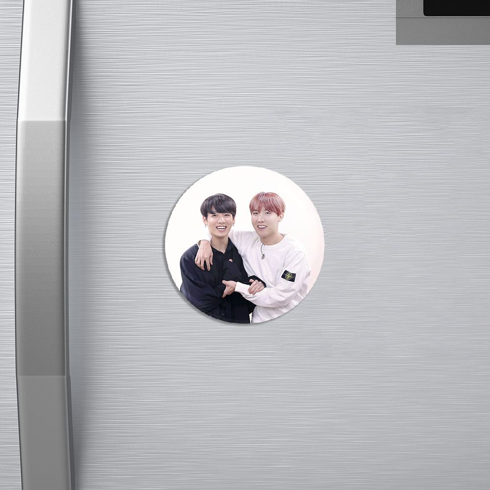 مگنت گروه بی تی اس BTS خندالو با روکش سلفون مات مخملی ضدخش و قطعه پشتی فلزی تولید شده است که آهنربای اتمی بکار برده شده در محصول، بصورت مخفی تعبیه شده ودیده نمی شود. ضمن اینکه گیرایی بسیار بالایی داشته و به هیچ عنوان از روی یخچال نمی افتد.