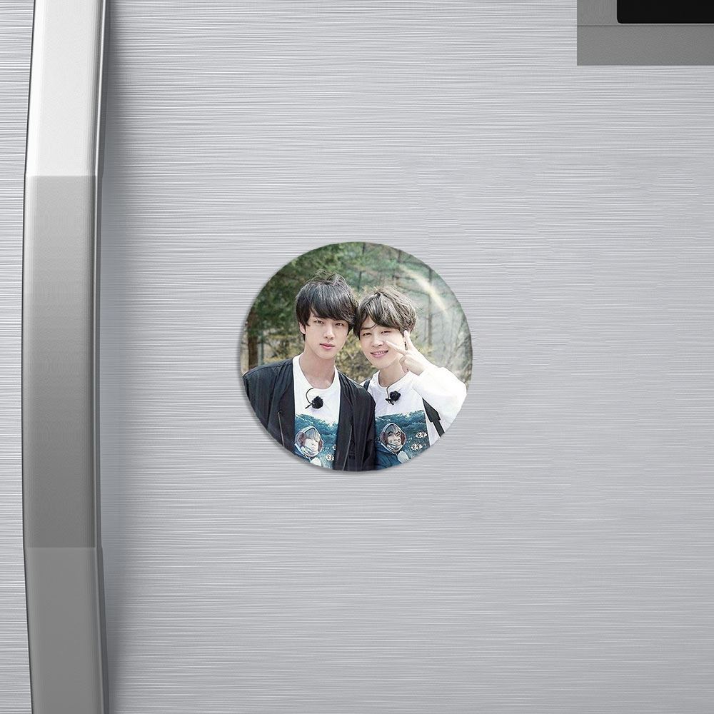 مگنت گروه بی تی اس BTS خندالو با روکش سلفون مات مخملی ضدخش و قطعه پشتی فلزی تولید شده است که آهنربای اتمی بکار برده شده در محصول، بصورت مخفی تعبیه شده ودیده نمی شود. ضمن اینکه گیرایی بسیار بالایی داشته و به هیچ عنوان از روی یخچال نمی افتد.