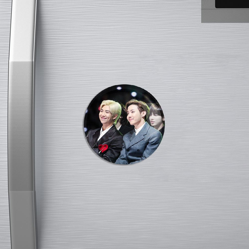 مگنت گروه بی تی اس BTS خندالو با روکش سلفون مات مخملی ضدخش و قطعه پشتی فلزی تولید شده است که آهنربای اتمی بکار برده شده در محصول، بصورت مخفی تعبیه شده ودیده نمی شود. ضمن اینکه گیرایی بسیار بالایی داشته و به هیچ عنوان از روی یخچال نمی افتد.