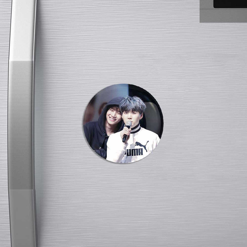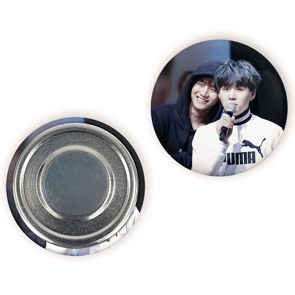 مگنت گروه بی تی اس BTS خندالو با روکش سلفون مات مخملی ضدخش و قطعه پشتی فلزی تولید شده است که آهنربای اتمی بکار برده شده در محصول، بصورت مخفی تعبیه شده ودیده نمی شود. ضمن اینکه گیرایی بسیار بالایی داشته و به هیچ عنوان از روی یخچال نمی افتد.