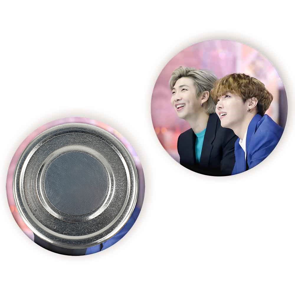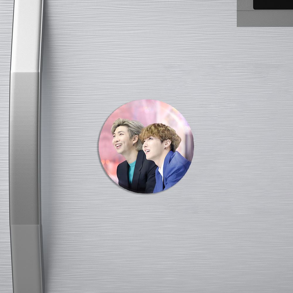 مگنت گروه بی تی اس BTS خندالو با روکش سلفون مات مخملی ضدخش و قطعه پشتی فلزی تولید شده است که آهنربای اتمی بکار برده شده در محصول، بصورت مخفی تعبیه شده ودیده نمی شود. ضمن اینکه گیرایی بسیار بالایی داشته و به هیچ عنوان از روی یخچال نمی افتد.