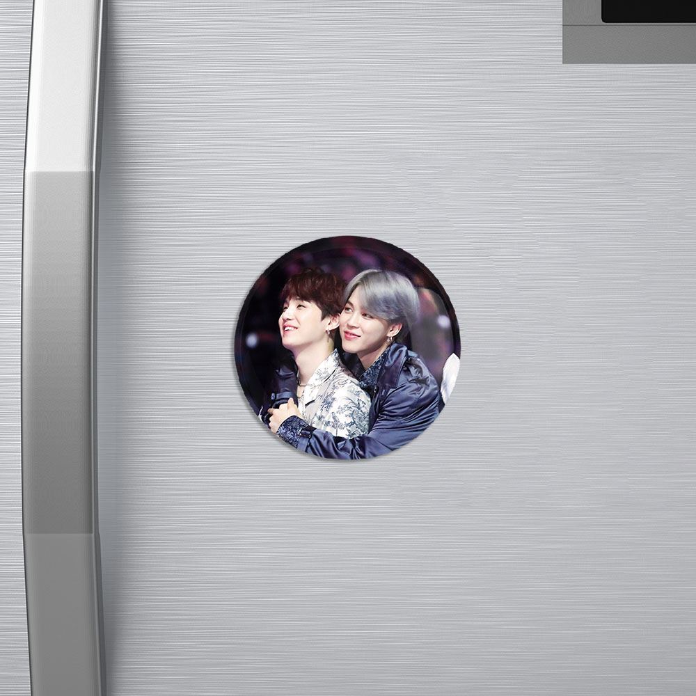 مگنت گروه بی تی اس BTS خندالو با روکش سلفون مات مخملی ضدخش و قطعه پشتی فلزی تولید شده است که آهنربای اتمی بکار برده شده در محصول، بصورت مخفی تعبیه شده ودیده نمی شود. ضمن اینکه گیرایی بسیار بالایی داشته و به هیچ عنوان از روی یخچال نمی افتد.