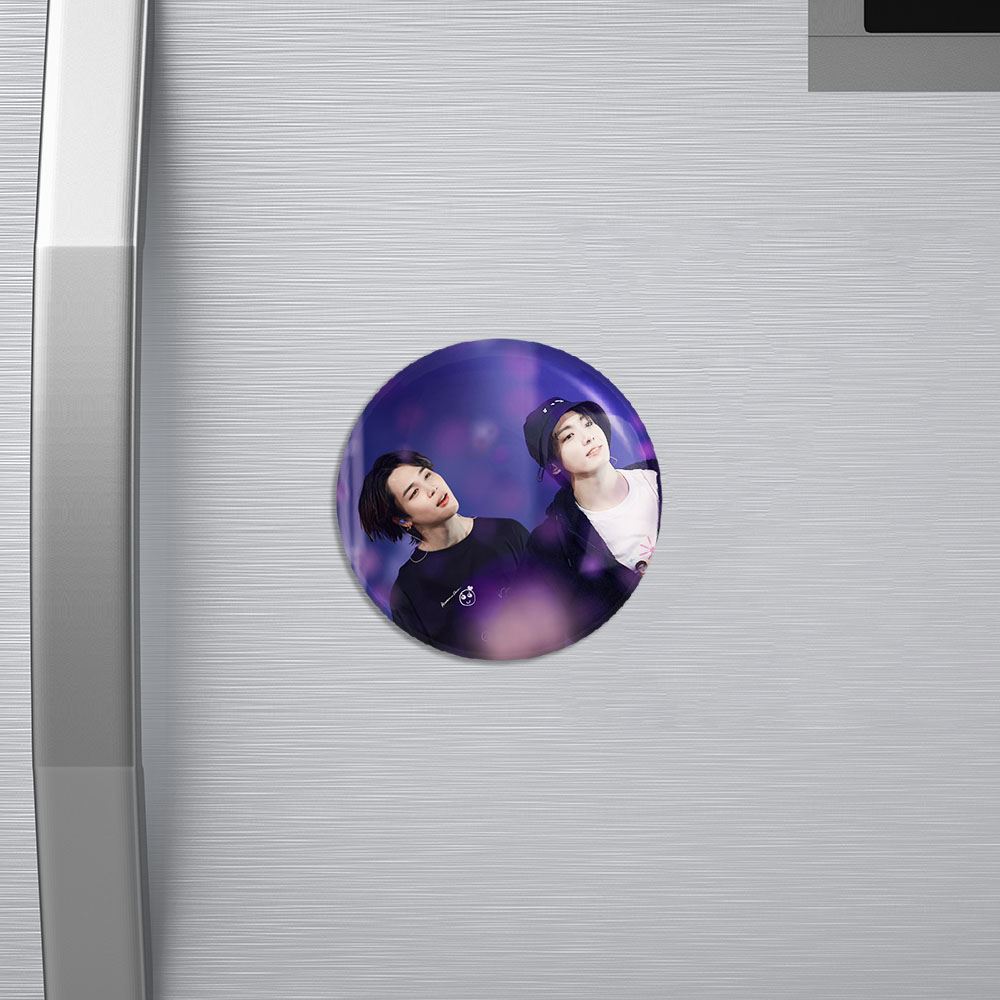 مگنت گروه بی تی اس BTS خندالو با روکش سلفون مات مخملی ضدخش و قطعه پشتی فلزی تولید شده است که آهنربای اتمی بکار برده شده در محصول، بصورت مخفی تعبیه شده ودیده نمی شود. ضمن اینکه گیرایی بسیار بالایی داشته و به هیچ عنوان از روی یخچال نمی افتد.