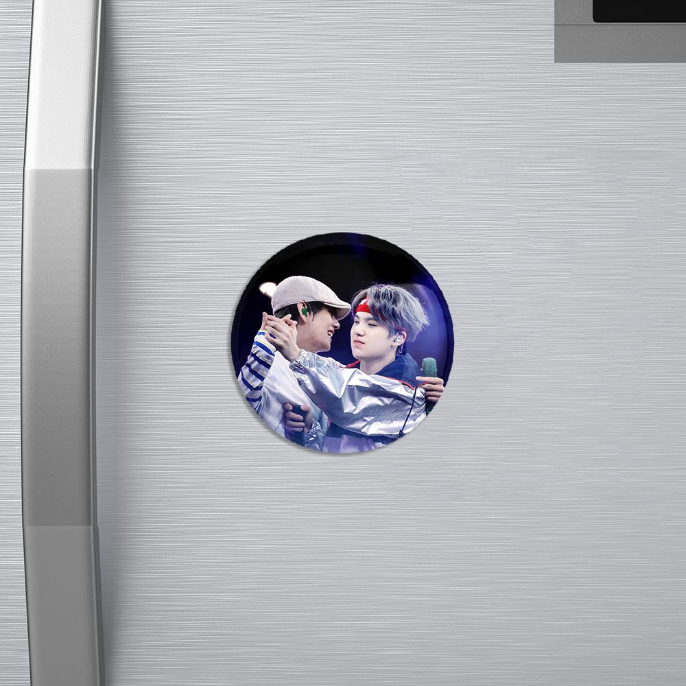 مگنت گروه بی تی اس BTS خندالو با روکش سلفون مات مخملی ضدخش و قطعه پشتی فلزی تولید شده است که آهنربای اتمی بکار برده شده در محصول، بصورت مخفی تعبیه شده ودیده نمی شود. ضمن اینکه گیرایی بسیار بالایی داشته و به هیچ عنوان از روی یخچال نمی افتد.