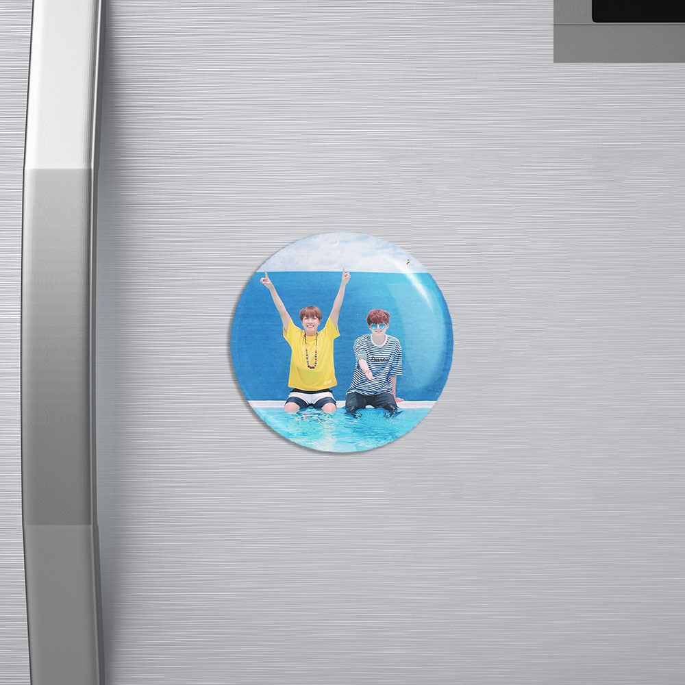 مگنت گروه بی تی اس BTS خندالو با روکش سلفون مات مخملی ضدخش و قطعه پشتی فلزی تولید شده است که آهنربای اتمی بکار برده شده در محصول، بصورت مخفی تعبیه شده ودیده نمی شود. ضمن اینکه گیرایی بسیار بالایی داشته و به هیچ عنوان از روی یخچال نمی افتد.