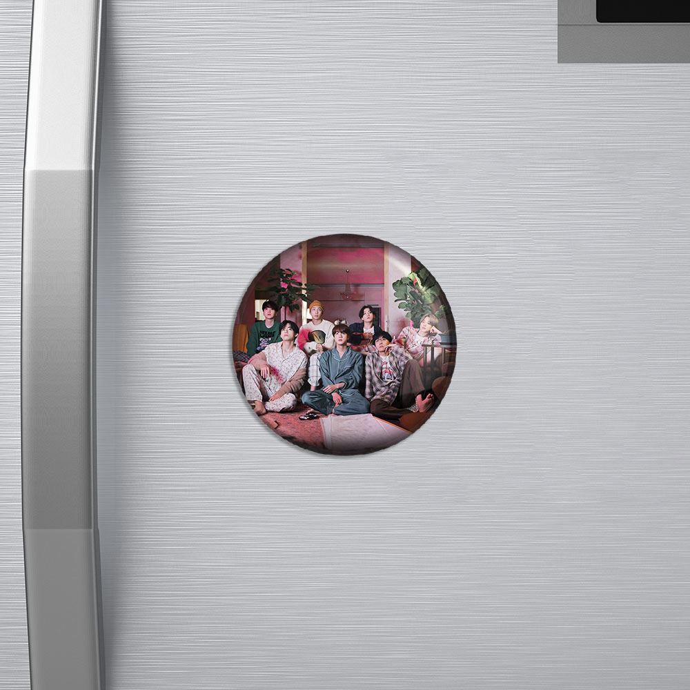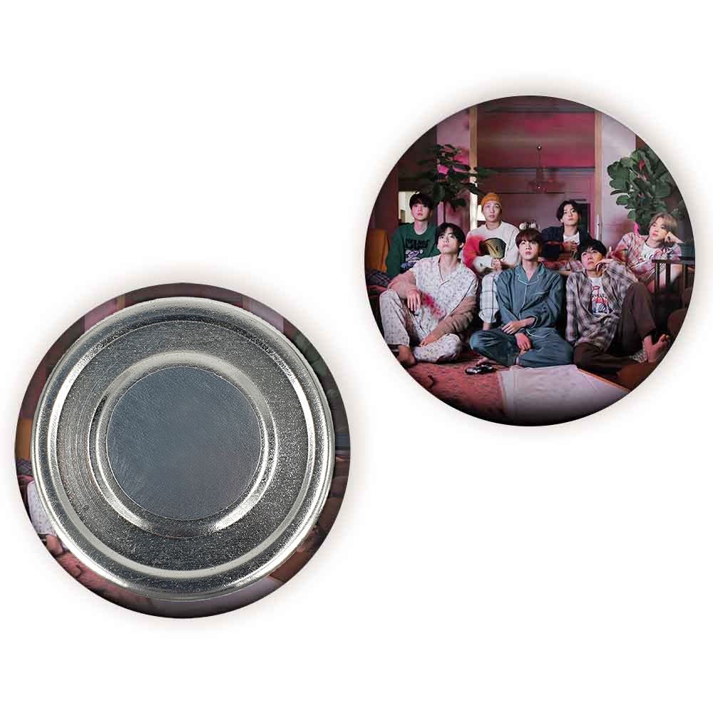 مگنت گروه بی تی اس BTS خندالو با روکش سلفون مات مخملی ضدخش و قطعه پشتی فلزی تولید شده است که آهنربای اتمی بکار برده شده در محصول، بصورت مخفی تعبیه شده ودیده نمی شود. ضمن اینکه گیرایی بسیار بالایی داشته و به هیچ عنوان از روی یخچال نمی افتد.