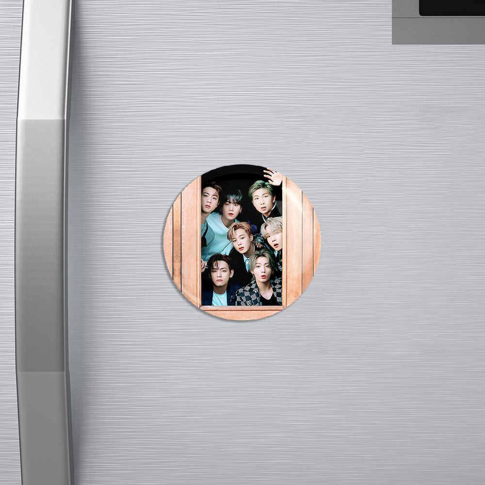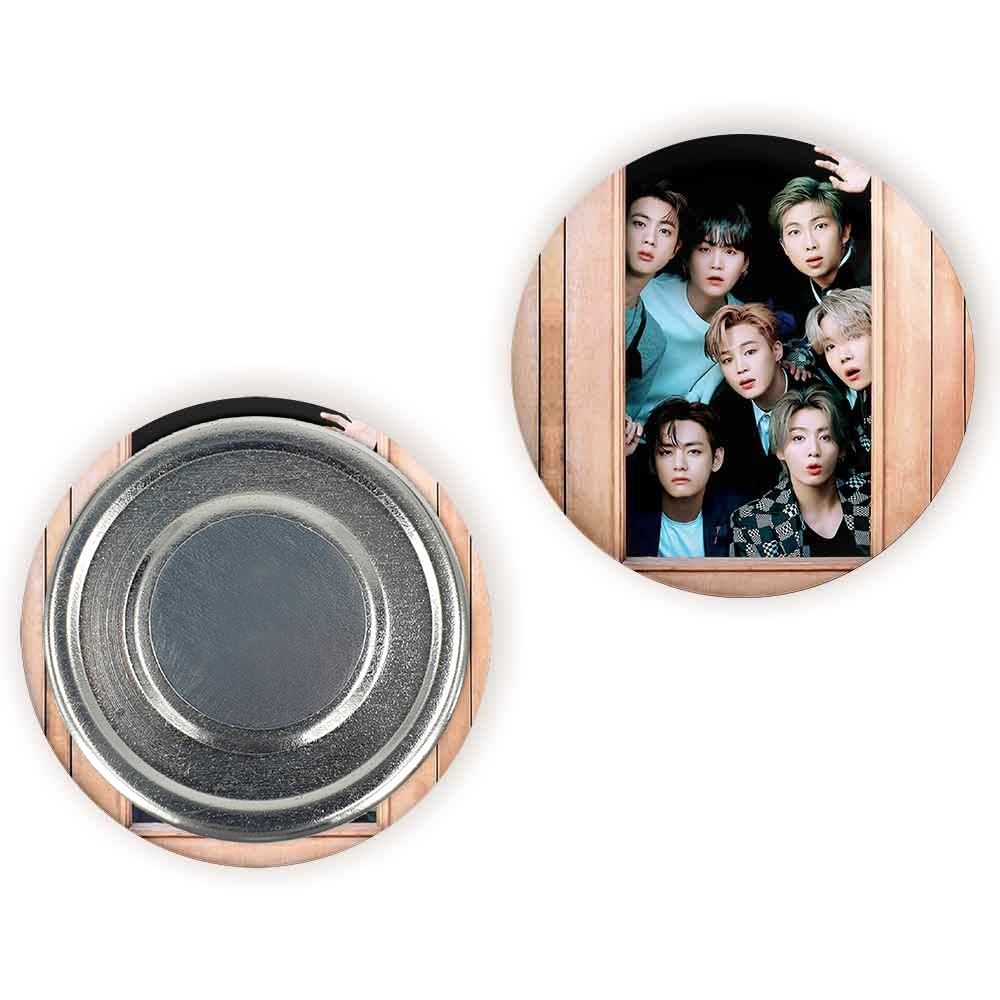 مگنت گروه بی تی اس BTS خندالو با روکش سلفون مات مخملی ضدخش و قطعه پشتی فلزی تولید شده است که آهنربای اتمی بکار برده شده در محصول، بصورت مخفی تعبیه شده ودیده نمی شود. ضمن اینکه گیرایی بسیار بالایی داشته و به هیچ عنوان از روی یخچال نمی افتد.