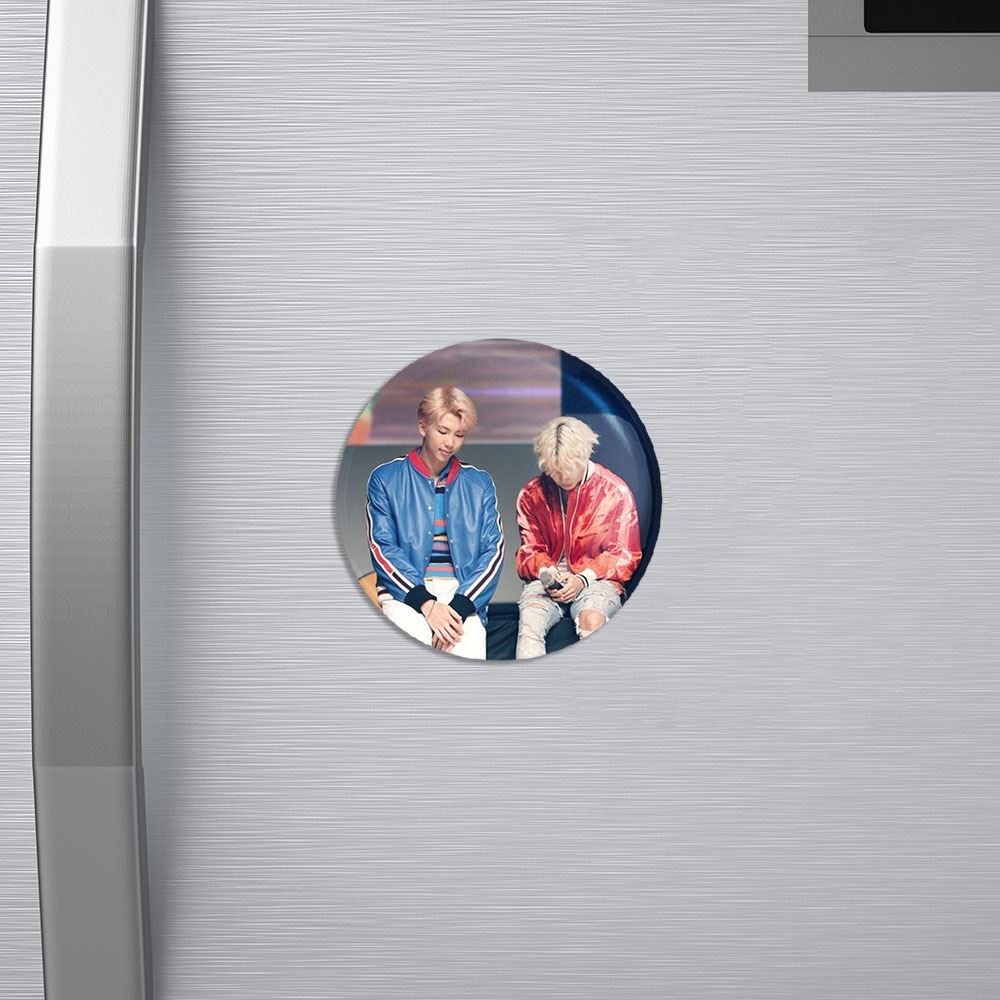 مگنت گروه بی تی اس BTS خندالو با روکش سلفون مات مخملی ضدخش و قطعه پشتی فلزی تولید شده است که آهنربای اتمی بکار برده شده در محصول، بصورت مخفی تعبیه شده ودیده نمی شود. ضمن اینکه گیرایی بسیار بالایی داشته و به هیچ عنوان از روی یخچال نمی افتد.