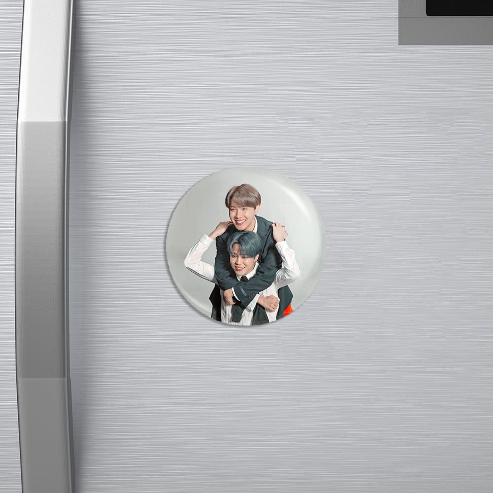 مگنت گروه بی تی اس BTS خندالو با روکش سلفون مات مخملی ضدخش و قطعه پشتی فلزی تولید شده است که آهنربای اتمی بکار برده شده در محصول، بصورت مخفی تعبیه شده ودیده نمی شود. ضمن اینکه گیرایی بسیار بالایی داشته و به هیچ عنوان از روی یخچال نمی افتد.