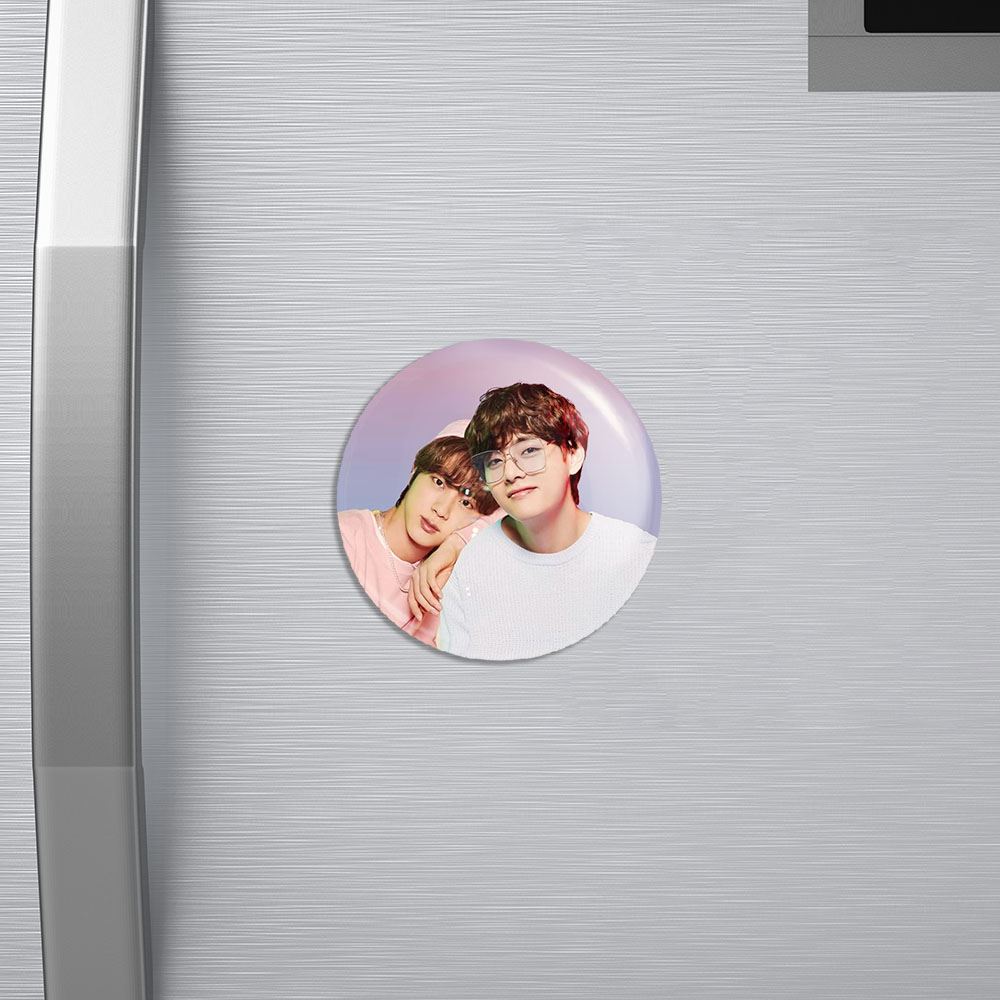 مگنت گروه بی تی اس BTS خندالو با روکش سلفون مات مخملی ضدخش و قطعه پشتی فلزی تولید شده است که آهنربای اتمی بکار برده شده در محصول، بصورت مخفی تعبیه شده ودیده نمی شود. ضمن اینکه گیرایی بسیار بالایی داشته و به هیچ عنوان از روی یخچال نمی افتد.