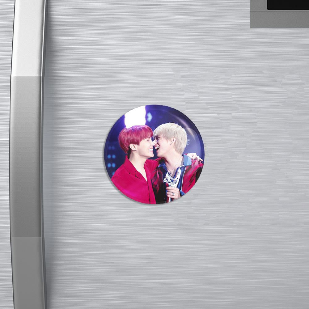 مگنت گروه بی تی اس BTS خندالو با روکش سلفون مات مخملی ضدخش و قطعه پشتی فلزی تولید شده است که آهنربای اتمی بکار برده شده در محصول، بصورت مخفی تعبیه شده ودیده نمی شود. ضمن اینکه گیرایی بسیار بالایی داشته و به هیچ عنوان از روی یخچال نمی افتد.
