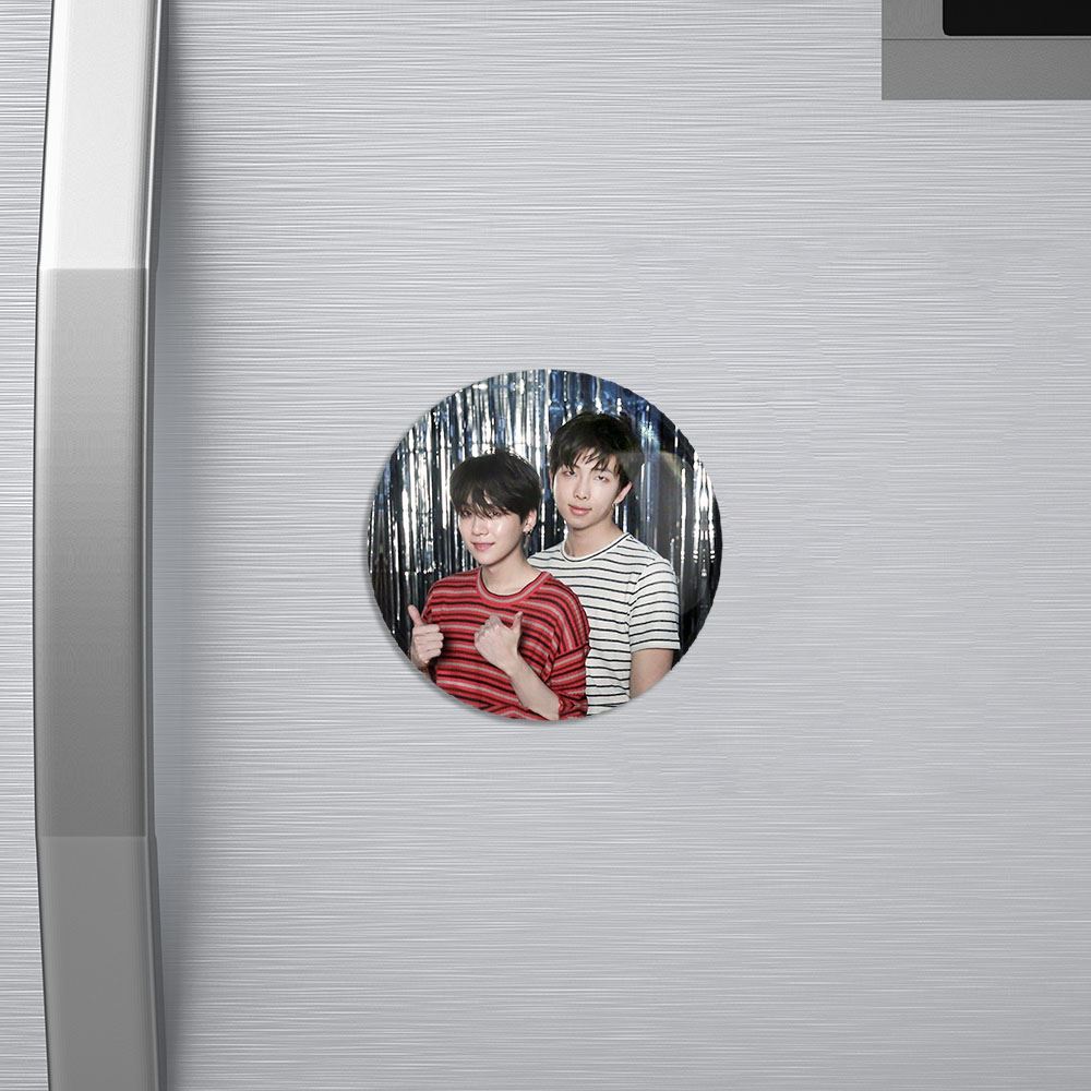 مگنت گروه بی تی اس BTS خندالو با روکش سلفون مات مخملی ضدخش و قطعه پشتی فلزی تولید شده است که آهنربای اتمی بکار برده شده در محصول، بصورت مخفی تعبیه شده ودیده نمی شود. ضمن اینکه گیرایی بسیار بالایی داشته و به هیچ عنوان از روی یخچال نمی افتد.
