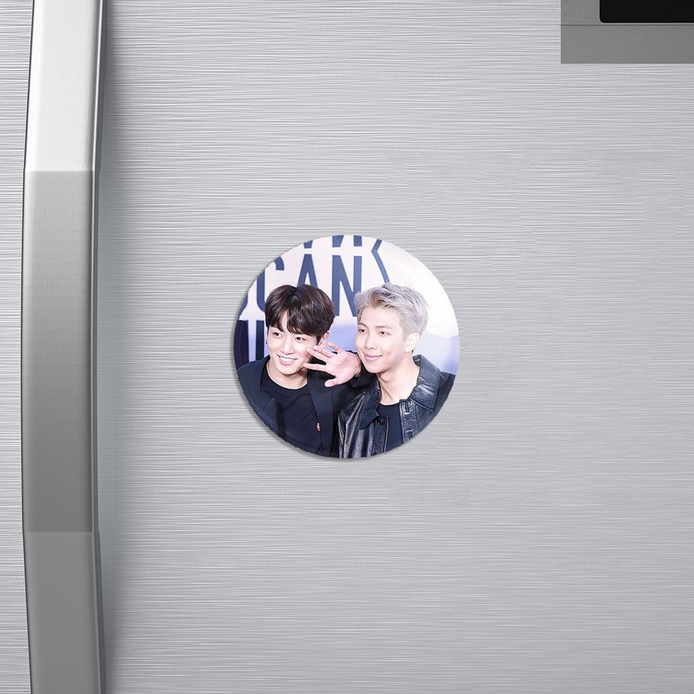 مگنت گروه بی تی اس BTS خندالو با روکش سلفون مات مخملی ضدخش و قطعه پشتی فلزی تولید شده است که آهنربای اتمی بکار برده شده در محصول، بصورت مخفی تعبیه شده ودیده نمی شود. ضمن اینکه گیرایی بسیار بالایی داشته و به هیچ عنوان از روی یخچال نمی افتد.